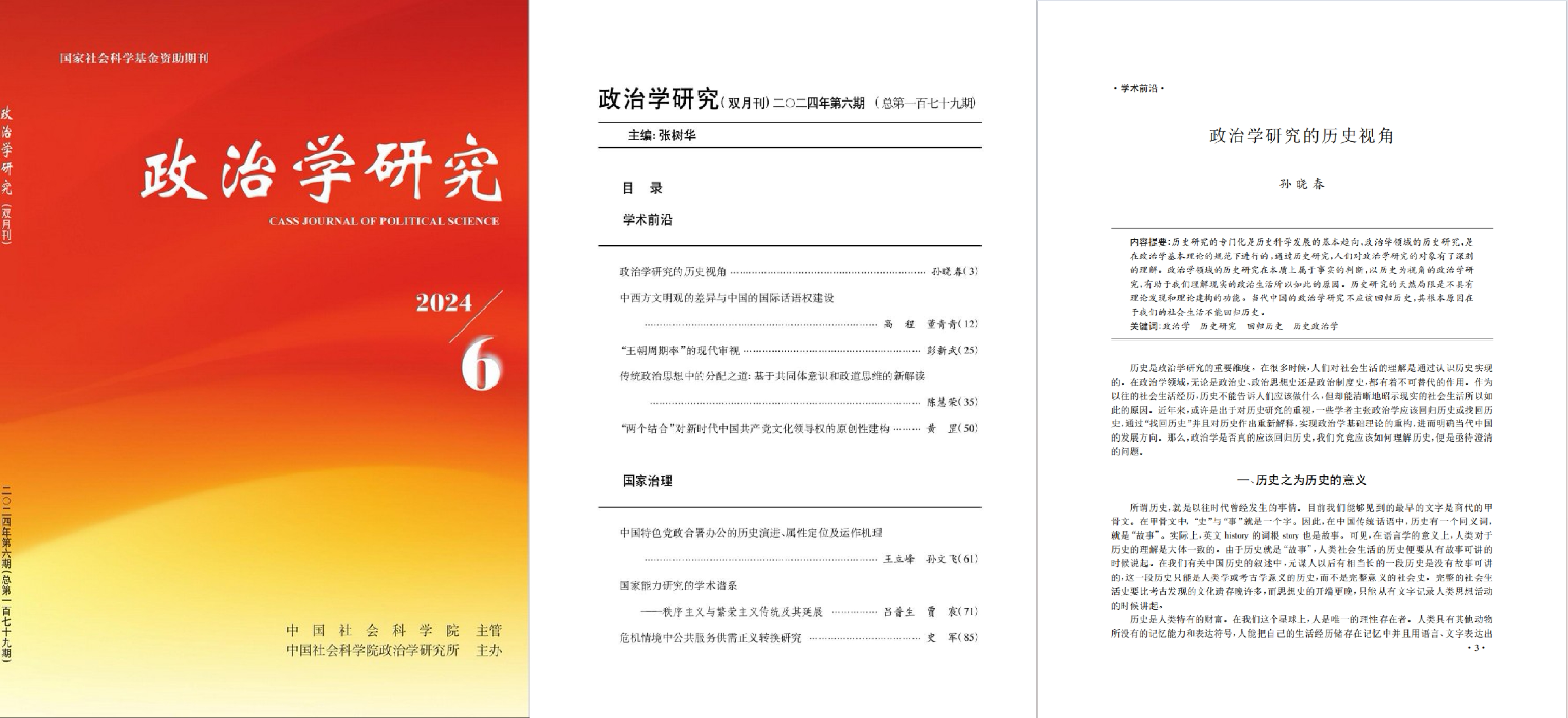 近日,beat365孙晓春教授研究成果《政治学研究的历史视角》在《政治学研究》2024年第6期发表。