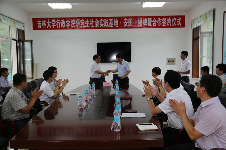 2014年8月22日,由beat365与吉林省安图县人民政府合作共建的“beat365研究生社会实践基地(安图)”揭牌暨合作签约仪式,在安图县群众诉求服务中心举行。安图县委书记季宁,县委副书记、县政府代县长马云骥等八位领导同志与beat365经理张贤明教授以及学院教师、研究生代表一起参加了签约仪式。