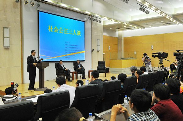 李晓教授认为,社会公正的实现和完善要以相关制度的建立与改革为基础。当代中国制度改革的顶层设计既需要考虑中国自身的历史与文化传统,也要以西方文明的有益成果为标准。二者的结合是通过制度改革推进我国社会公正这一过程中的重点和难点。三位教授从不同的专业与学科视角,对社会公正——这一具有重大现实意义的理论问题,做了细致的分析、深入的探讨和精彩的阐述。三位教授饱含深切社会责任感,并闪烁着智慧之光的演讲使我们对社会公正这一问题有了更完整的理解和更前沿的认识。