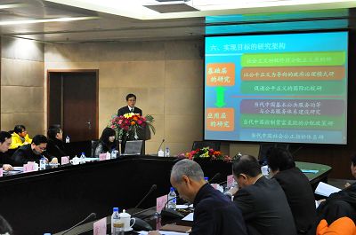 开题论证会由专家组组长王浦劬教授主持。项目首席专家周光辉教授首先就项目的总体设计进行汇报,介绍了自项目立项以来已完成的三项工作,一是进行了重大项目的顶层设计,二是明确了子课题的研究任务,三是建设重大项目支持平台。周光辉教授详细介绍了项目研究的目的与意义、指导思想、目标、基本任务、基本要求、研究架构、进度安排、预期研究成果、阶段性进展、阶段性研究成果,强调本项目的研究与刚刚完成的教育部重大攻关课题“社会公正与政府责任问题研究”不同,“促进社会公平正义与政府治理研究”不是一种规范性的基础理论研究,而是以促进中国社会公平正义为问题导向的、经验性的应用研究,该项目必须致力于解决国家社会发展的现实问题,推动中国社会的公平正义实现。项目研究成果应有创新性,对策性和可操作性。“促进社会公平正义与政府治理研究”有四个目标:一是要提出适合我国社会主义初级阶段的分配正义原则;二是要建立中国社会公正指标评价体系;三是要提出构建以公平正义为导向的政府治理模式,实现由以GDP为导向的政府治理模式向以公平正义为导向的政府治理模式的转变;四是要为当代中国基本公共服务均等化及控制贫富差距的分配政策制定提出改革建议。“促进社会公平正义与政府治理研究”有三个基本任务:一是应采取新的研究方法,力争2013年发布中国社会公平状态的蓝皮书;二是应提出新观点,提出切合我国社会主义初级阶段的分配正义原则;三是要为政府促进社会公平正义的实现提出新建议。为了实现上述目标和基本任务,项目研究有三个基本要求:一是项目研究要有历史感,准确把握中国现代化发展中的阶段性特征;二是项目研究要有强烈的现实关怀,针对中国社会的现实问题;三是项目研究要有建设性的态度,紧紧围绕“促进社会公平正义与政府治理”这一核心主题,在提出新观点、新建议,运用新方法上做出努力。为了推进项目的研究,目前,我们已经完成了两个平台建设,即学术交流平台,社会公正与政府治理研究中心网站:;文献数据库支持平台,即社会公正与政府治理研究文献数据库网站:http//just-gov-data.jlu.edu.cn。重大项目宣传网页http://just-gov.jlu.edu.cn/?mod=zdxm也已正式开通。