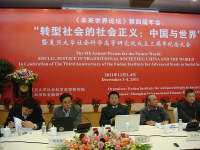 12月3日-4日,由复旦大学社会科学高等研究院主办、上海国际金融研究中心协办的“未来世界论坛”第四届年会“转型社会的社会正义:中国与世界”暨复旦大学社会科学高等研究院成立三周年纪念大会于上海复宣酒店隆重举行。来自加州大学、北京大学、清华大学、复旦大学、台湾中央研究院、台湾大学、澳门大学、中国社科院、上海社联、中国人民大学、南开大学、华东师范大学、上海交通大学、厦门大学、beat365体育官网、武汉大学、华中师范大学、上海师范大学、华东政法大学、浙江工商大学等多所高校和研究机构的72名国内外人文社会科学领域的专家、学者,政界、传媒界人士参加了会议。