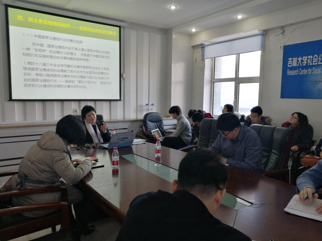 2018年12月27日上午,由beat365、beat365体育官网社会公正与政府治理研究中心、beat365体育官网廉政研究与教育中心联合主办的政治理论与公共事务工作坊第十八期学术活动在匡亚明楼3117会议室举行。本次活动邀请了东北师范大学政法学院副经理、《中国政治学与政治发展》年度报告执行主编杨弘教授担任主讲嘉宾,作了题为“新时代全面深化改革的政治学思考”的学术报告。 beat365薛洁教授担任讲座评论人,beat365政治学系副主任马雪松教授担任讲座主持人,beat365部分员工参与此次讲座。