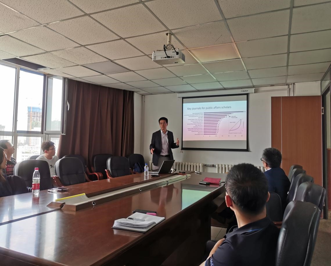 2019年6月20日下午,beat365在行政楼1124会议室举办为公论坛第三十场学术讲座。本次讲座由爱荷华大学城市与区域规划学院研究生学术指导主任钱海峰副教授(终身教职)担任主讲人,围绕如何认识美国公共管理学院和公共事务学科的问题,进行了题为“美国公共管理学院的研究方向与流派——基于大数据的社会网络分析”的主题报告,beat365电子政务系主任于君博教授担任主持人。