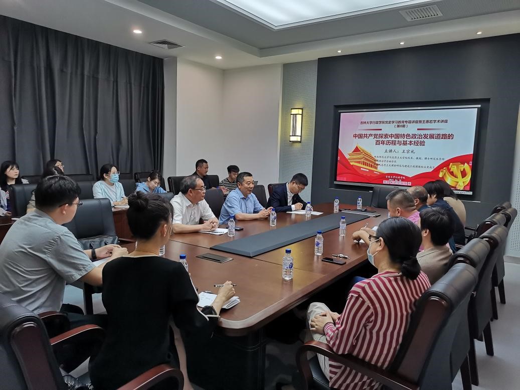 王宗礼教授结合长期从事政治学以及马克思主义中国化方面的研究,详细比较分析了西方政治学中政治发展理论与中国特色政治发展道路在发展目标、政党制度、动力机制等方面的不同之处,全面解读了中国共产党探索中国特色政治发展道路的百年辉煌历程以及革命斗争、社会主义建设所取得的宝贵经验,从源头上阐释了中国特色政治发展道路的特色如何形成,以及中国共产党探索中国特色政治发展道路的理论逻辑、历史逻辑与实践逻辑。王宗礼教授以深厚的理论功底和独到的思想见解,进一步丰富了beat365师生的党史知识,加深了学院师生对中国特色政治发展道路的理解感悟。讲座结束后,与会师生围绕主题踊跃发言,结合本次讲座内容深入交流学习心得体会,王宗礼教授一一回应与会师生提问,与学院师生进行热烈的交流互动。