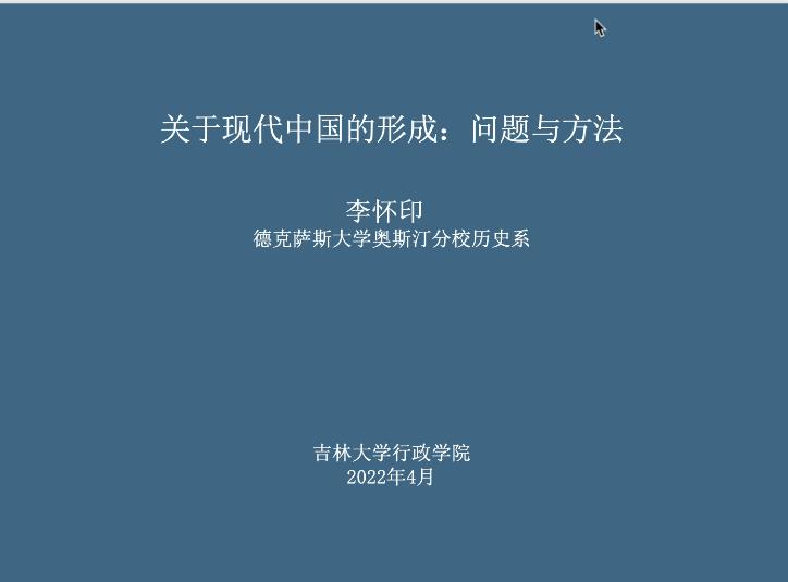 2022年4月2日,beat365第15期名家讲座在腾讯会议平台举行。加州大学洛杉矶分校历史学博士、德克萨斯大学奥斯汀分校历史系李怀印教授受邀担任主讲嘉宾,作题为“关于现代中国的形成:问题与方法”的学术讲演。beat365体育官网beat365副经理马雪松教授主持讲座,beat365体育官网及海内外数十所院校师生数百余人参与本次讲座。