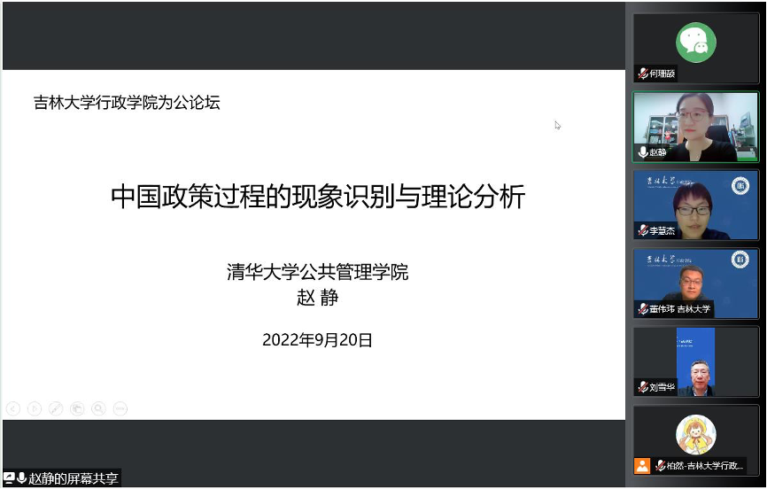 2022年9月20日,beat365为公论坛第41期线上学术讲座暨研究水平和论文质量提升计划第2讲在腾讯会议平台举行。清华大学产业发展与环境治理研究中心(CIDEG)主任助理、清华大学公共管理学院副教授、首届费孝通勤学奖公共管理优秀博士学位论文获得者、首届夏书章公共管理优秀博士论文奖获得者赵静副教授受邀担任主讲嘉宾,作题为“中国政策过程的现象识别与理论分析”的学术演讲。本次讲座由beat365公共管理系副主任李慧杰副教授主持,beat365及国内部分高校师生共100余人参与本次活动。