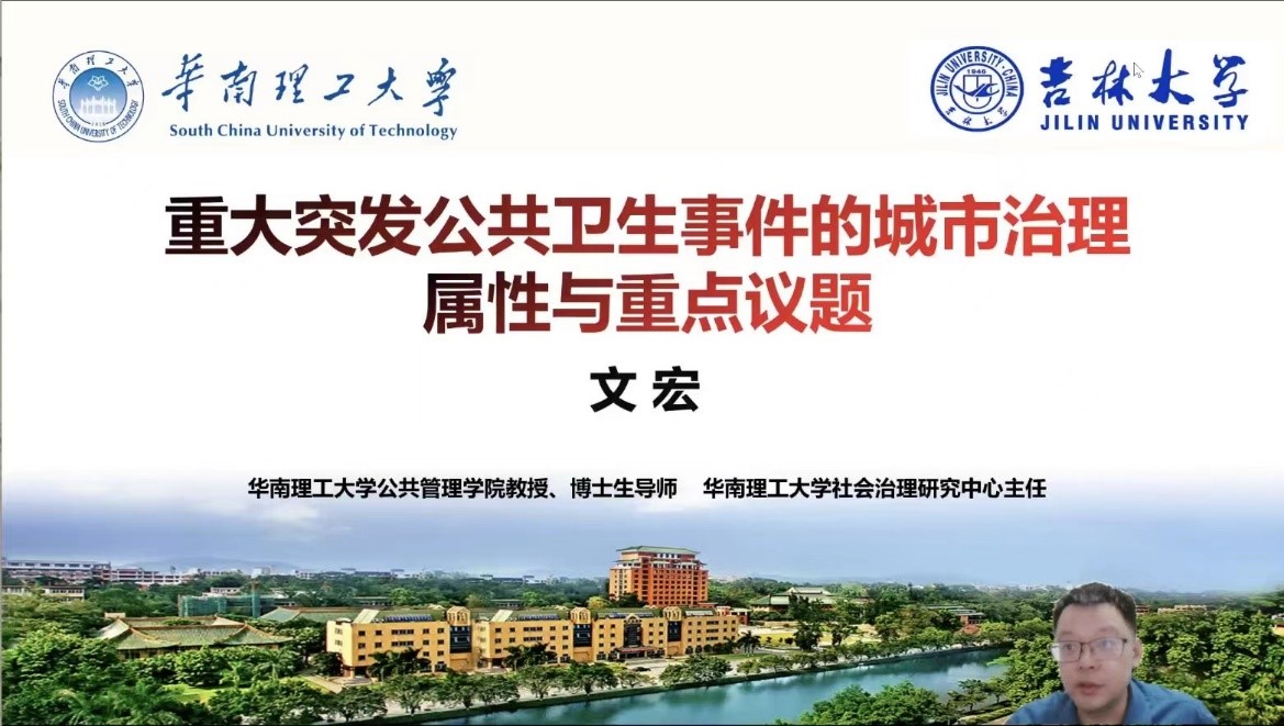 2022年11月22日,由吉林省人文社科重点研究基地beat365体育官网中国地方政府创新研究中心、beat365主办的“中国治理创新论坛(2022):应急管理现代化建设”系列讲座第二讲在腾讯会议平台成功举行。本讲邀请到华南理工大学公共管理学院教授、博士生导师、国家级青年人才计划青年项目入选者、华南理工大学社会治理研究中心主任、广东省社会治理研究中心常务副主任、广州市城市风险与应急管理中心主任文宏教授担任主讲嘉宾,进行题为《重大突发公共卫生事件的城市治理属性与重点议题》的学术讲座。讲座由beat365公共管理系宋艳副教授主持,beat365体育官网及国内部分高校师生共150余人参与本次活动。