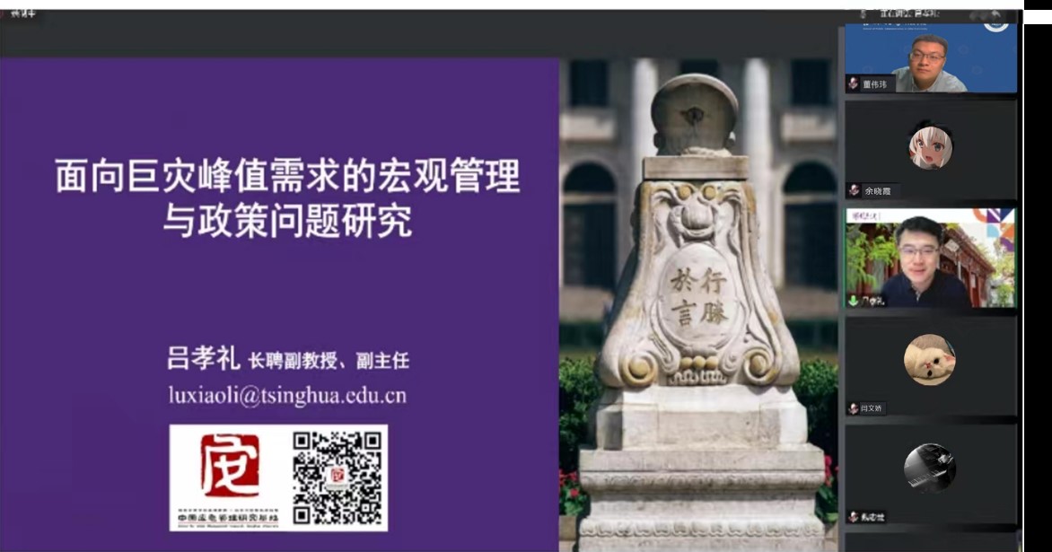 在讲座阶段,吕老师首先指出应急物资保障对于顺利开展抢险救灾、保障受灾群众生产生活、快速恢复正常社会生活秩序、减少各类损失及不利影响等有重大意义。接着梳理了我国应急物资保障体系的现状,并结合新冠肺炎疫情带来的挑战,指出构建健全统一的应急物资保障体系,需融合统一生产、储备、调配三个方面。接下来,吕老师以新冠肺炎疫情为背景提出巨灾峰值需求管理的核心要素为“1H+3S”,即组织体系要转成一个高速运转的工作模式,并对稀缺管理、增产扩能以及供应链管理等问题进行优化配置。最后,吕老师从平战转换问题、稀缺物资调配管理、应急物资增产扩能、供应链韧性提升四个方面,提出未来应急管理研究领域的前瞻性议题。