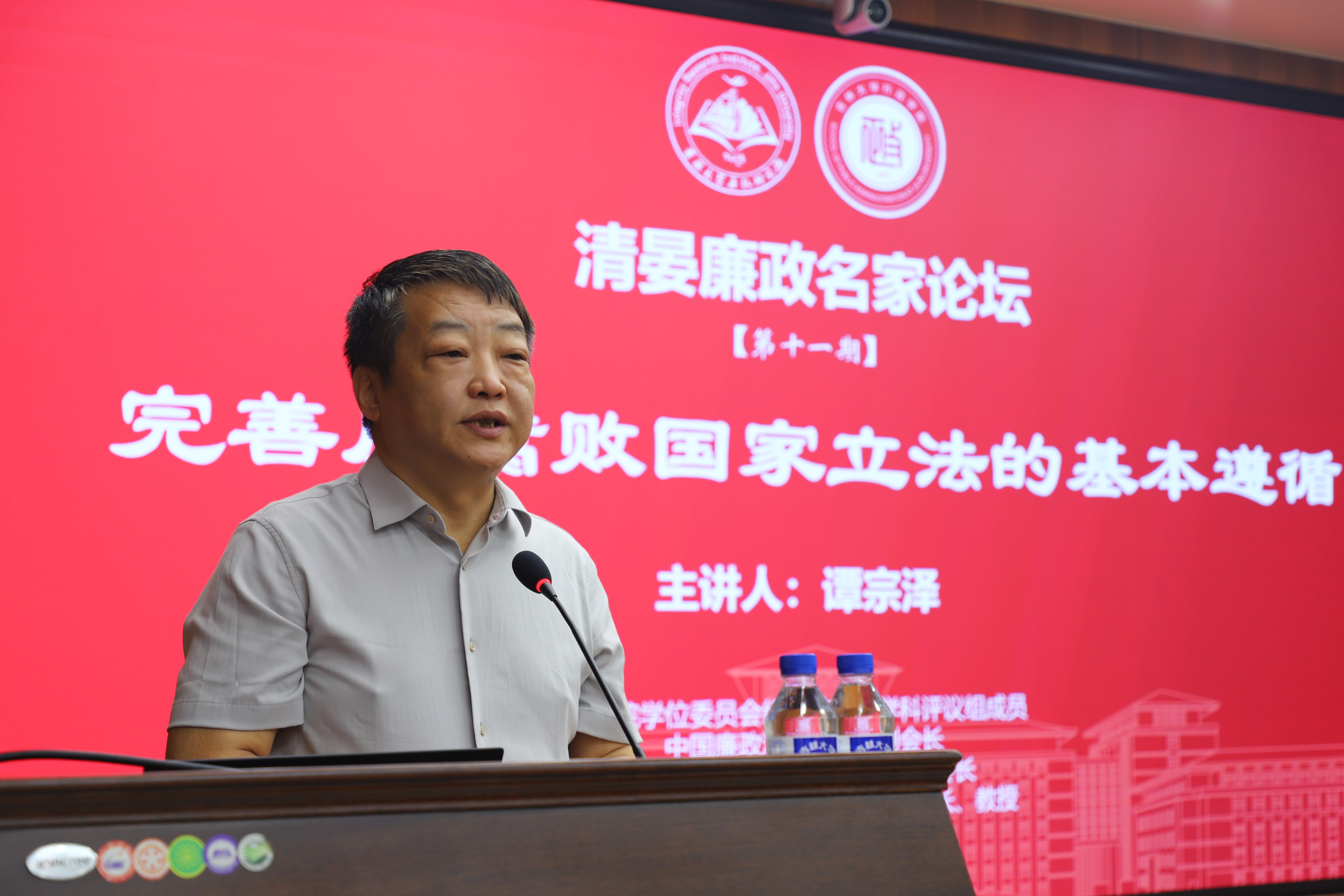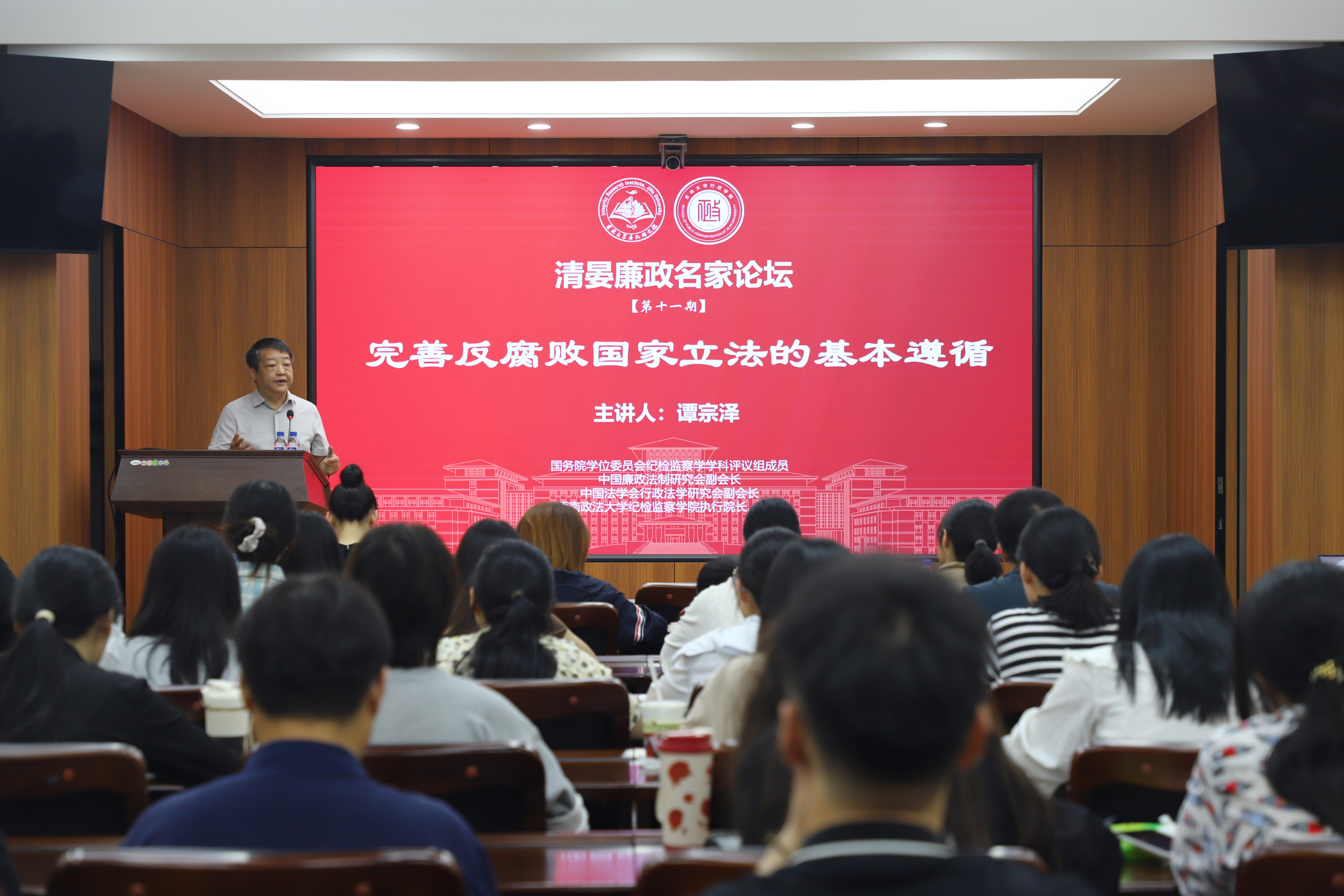 国务院学位委员会纪检监察学学科评议组成员、中国廉政法制研究会副会长、中国法学会行政法学研究会副会长、西南政法大学纪检监察学院执行经理谭宗泽教授应邀担任主讲专家,作题为“完善反腐败国家立法的基本遵循”的学术讲座。beat365郑倩副教授以及廉政学、政治学理论、法律政治学等专业的研究生和beat365本科生参加讲座。beat365体育官网廉政研究院副经理刘畅教授主持本期讲座。
