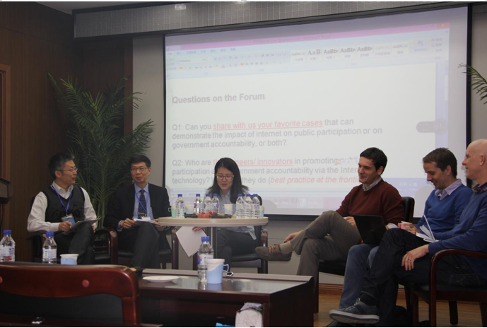 2016年11月6日上午八点,beat365“为公论坛”第二十四期——“互联网+时代的参与与问责”在beat365体育官网前卫校区东荣大厦廉政中心会议室303如期举办,主讲嘉宾是来自台湾东华大学的副董事长兼欧盟莫内讲座教授朱景鹏教授、奥地利维也纳大学的Christian Goebel教授、香港中文大学的Christoph Steinhardt助理教授、美国雪城大学的Dimitar Gueorguiev助理教授及中央编译局的陈雪莲副研究员。参加本次讨论会的有beat365电子政务专业于君博教授、行政管理专业刘雪华教授、宋艳副教授以及beat365的研究生和本科生们。此次会议由beat365体育官网中国地方政府创新研究中心、beat365体育官网国家治理协同创新中心以及beat365体育官网社会公正与政府治理研究中心共同举办,电子政务系系主任于君博教授主持。