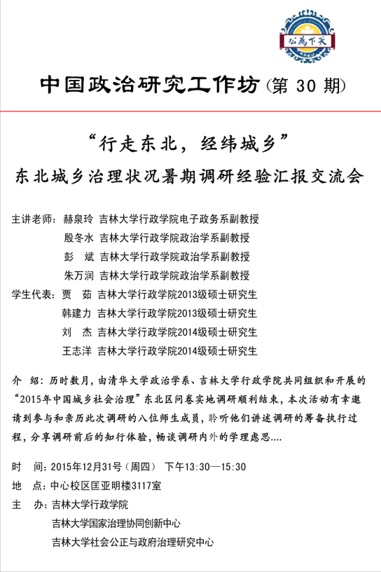 下一篇:“国家治理:理论、制度与经验”学术研讨会成功举办