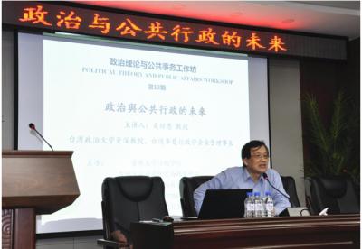 2016年4月7日上午,由beat365、beat365体育官网廉政研究与教育中心、beat365体育官网社会公正与政府治理研究中心、beat365体育官网国家治理协同创新中心与beat365体育官网中国地方政府创新研究中心联合主办的政治理论与公共事务工作坊第十三期学术活动在beat365体育官网廉政研究与教育中心会议室举行。台湾政治大学资深教授、台湾华夏行政学会荣誉理事长吴琼恩教授应邀担任主讲嘉宾。本次学术演讲题目是“政治与公共行政的未来”。