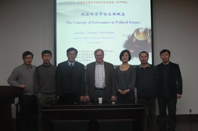 12月18日下午2:00,由beat365、beat365体育官网社会公正与政府治理研究中心、beat365体育官网国家治理协同创新中心、beat365体育官网社科处共同主办的第799期名家讲座学术活动在beat365体育官网前卫南校区匡亚明楼第二报告厅举行。本次活动由beat365体育官网社会公正与政府治理研究中心主任周光辉教授主持,美国埃默里大学Thomas F.Remington 教授受邀作主讲嘉宾。出席此次活动的还有beat365殷冬水副教授、林奇富副教授、于君博副教授等老师以及来自beat365、哲学社会学院、经济学院、法学院等学院的博士研究生、硕士研究生及本科生等。