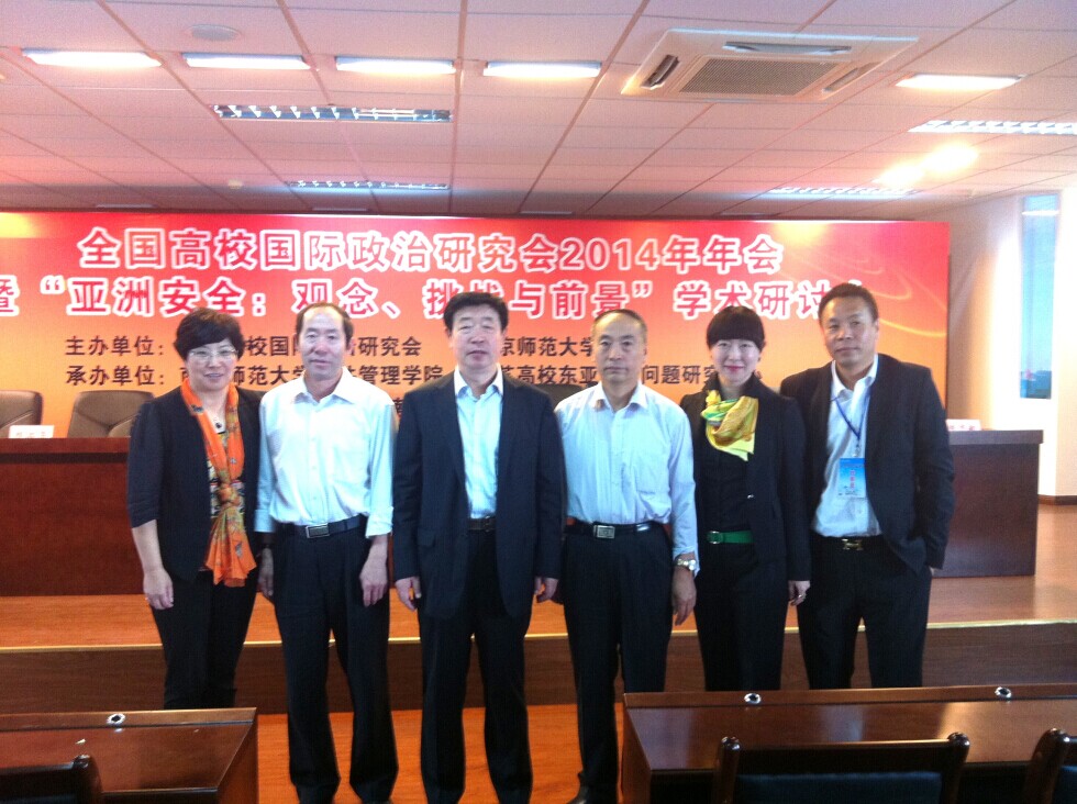 10月17至20日,全国高校国际政治研究会2014年会暨“亚洲安全:观念、挑战与前景”学术研讨会在南京师范大学召开。beat365国际政治系刘清才教授、黄凤志教授、刘雪莲教授、肖晞教授参加会议,东北亚研究院巴殿君教授、《beat365体育官网社会科学学报》刘文山主编也出席了此次会议。此次年会由全国高校国际政治研究会和南京师范大学主办、南京师范大学公共管理学院和江苏高校东亚国际问题研究中心承办。来自中国人民大学、北京大学、复旦大学等全国70余家单位的150多位专家学者参加了本次会议。