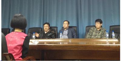 2014年11月14日晚上,beat365在东荣大厦511学术交流中心举办本科生保研经验交流会。交流会由本科生教学秘书曲文娜老师主持。本次交流会邀请到国际政治系郭锐副教授、行政管理系孙德超副教授和政治学系马雪松副教授担任评委,并由2011级三名已经成功保研的同学贺竞超、李思宇、徐炎做现场模拟面试。