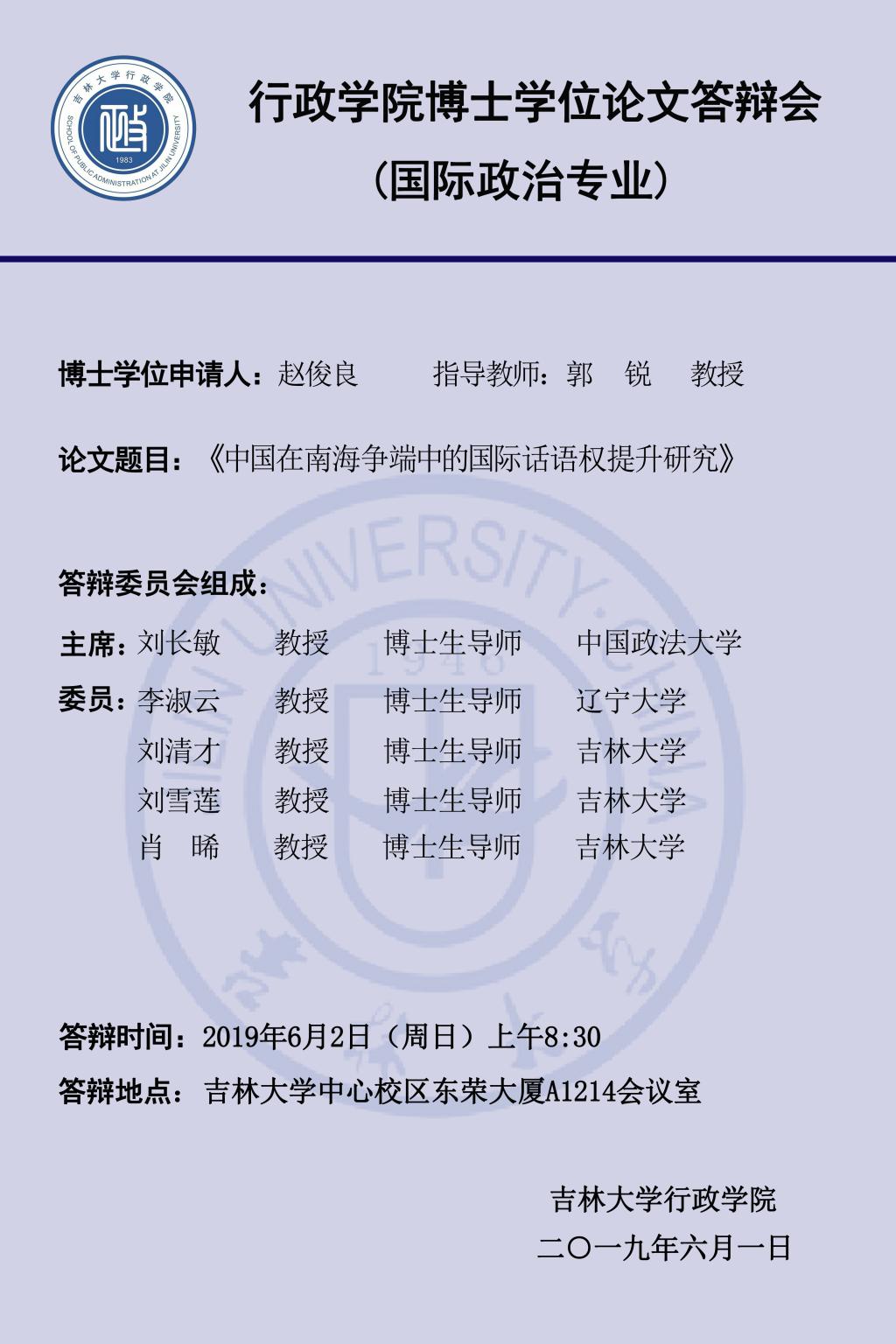 上一篇:2019年上半年博士学位论文答辩会(第三组:国际关系专业)