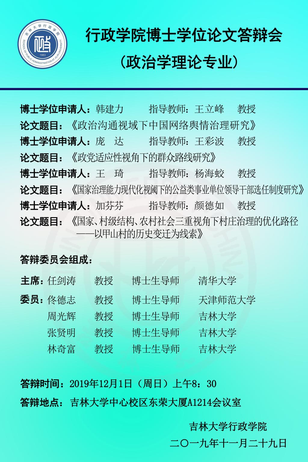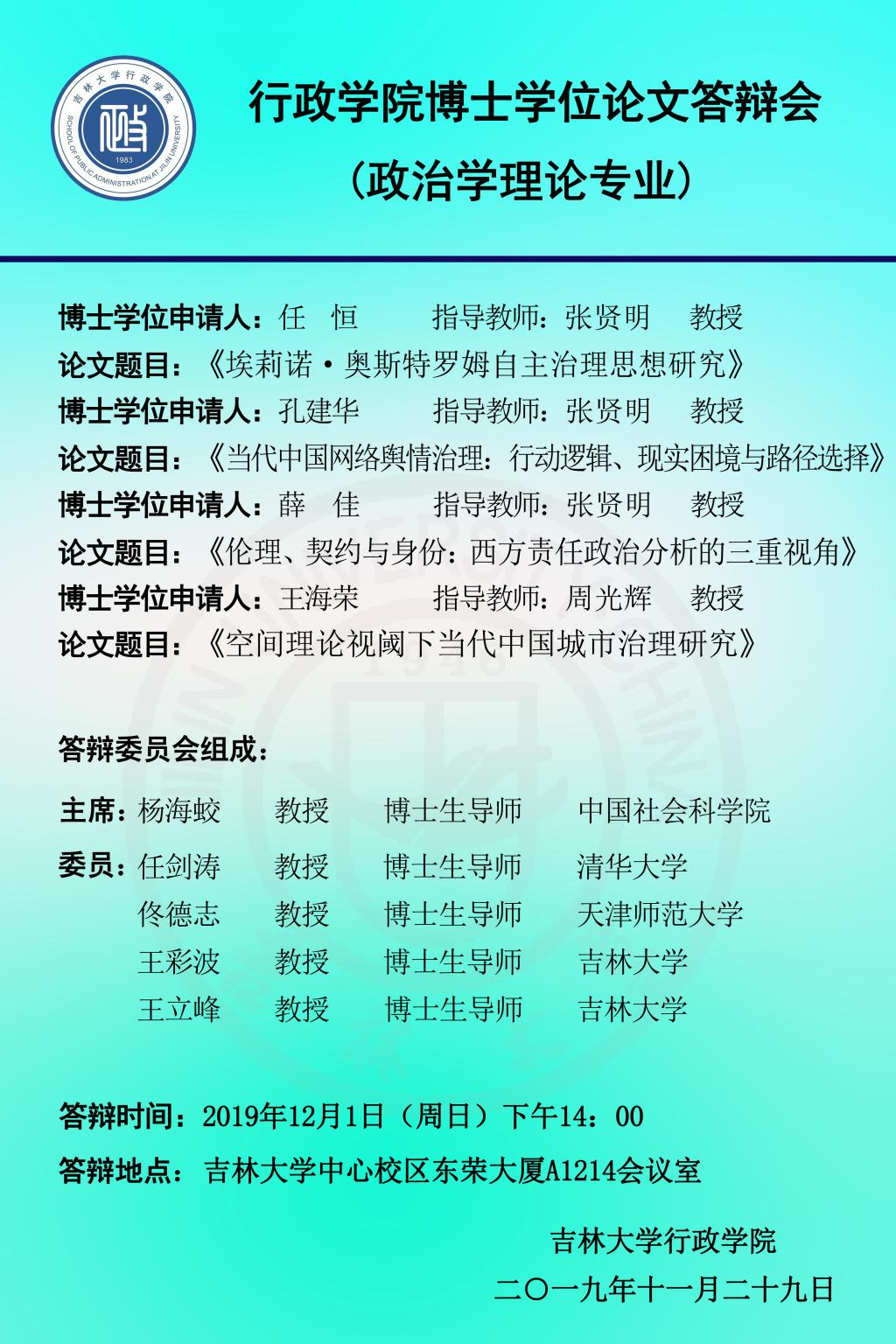 第二组:政治学理论专业(2019年12月1日下午组14:00开始,beat365体育官网中心校区东荣大厦A1214会议室)