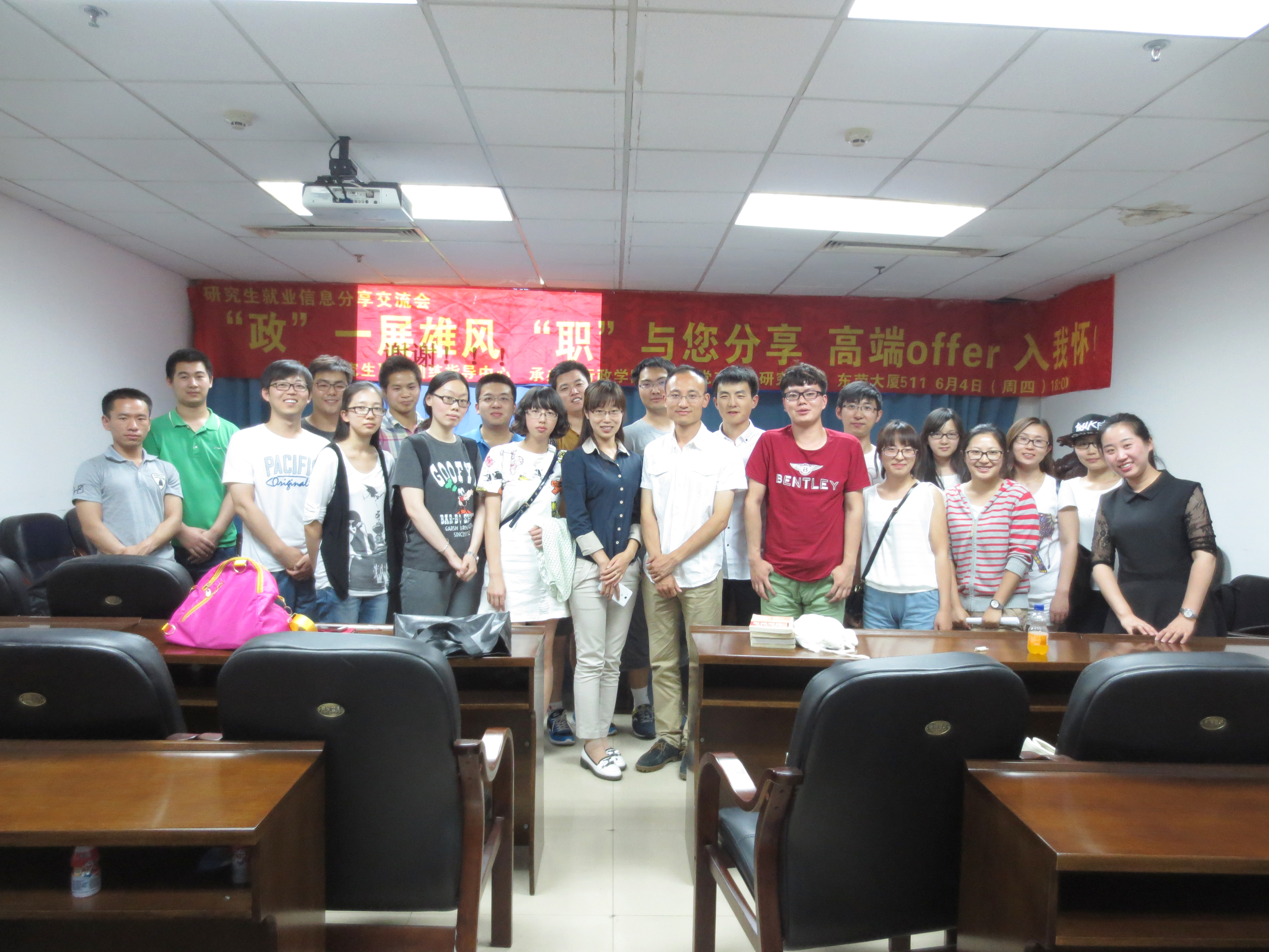 6月14日晚,公司组织的主题为“‘政’一展雄风,‘职’与您分享,高端offer任你拿!”优秀毕业研究生就业分享交流会在东荣大厦511拉开帷幕。本次活动邀请到2015届硕士毕业生郭士煜、李支立及文学院2015届硕士毕业生杨永磊、林栋等与低年级同学们分享求职经验。本次活动是由beat365体育官网研究生职前训练指导中心,及beat365研究生党支部和研究生会联合举办。