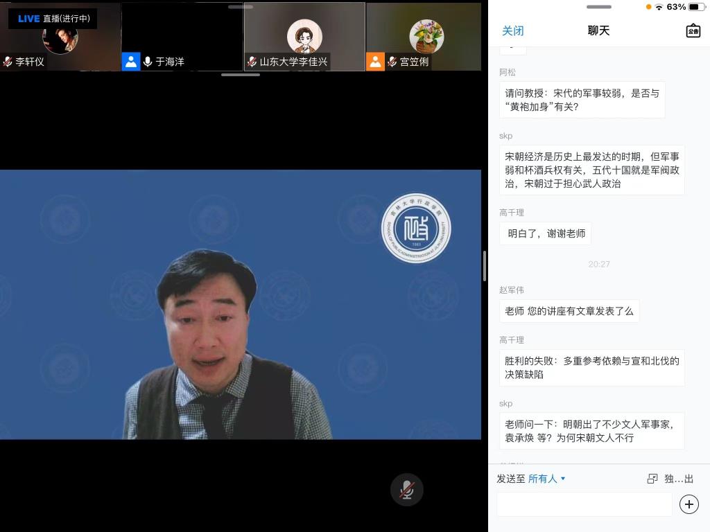 本次学术讲座兼具历史感与创新性,既具有学术价值又富有启发意义。通过此次学习,同学们对北宋的战略失败原因有了更加深入的了解,纷纷表示此次讲座对于开拓研究思路大有裨益,并对于海洋教授深厚的研究积淀与学术造诣感到敬佩。在疫情防控的特殊时期,希望同学们能够通过学术活动以史明鉴,了解新的学术分析视角,激发学术创造力,增添学术思想的厚度!
