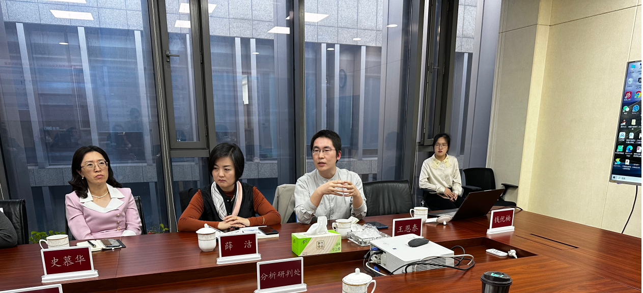 在公司师生与南通市市域指挥中心、崇川区区域治理现代化指挥中心的座谈会上,胡高明主任首先对指挥中心工作以及市域治理现代化建设情况进行了全面细致的介绍,崇川区指挥中心王强书记对指挥中心的亮点难点工作结合创新实例作了详细说明,紧接着公司党委副书记史慕华教授、政治学系薛洁教授、行政管理系副主任李慧杰副教授与指挥中心就后期的合作方向开展了深入交流与热烈讨论。随后实践基地项目汇报部分公司博士生王恩泰、闪纯晋和硕士生钱优楠分别围绕南通市外向型产业海外政策风险预警、12345政务服务热线研究开展主旨演讲,指挥中心胡主任和陈处长等对基地项目取得的前期成果表示高度肯定,并给予了完善建议。