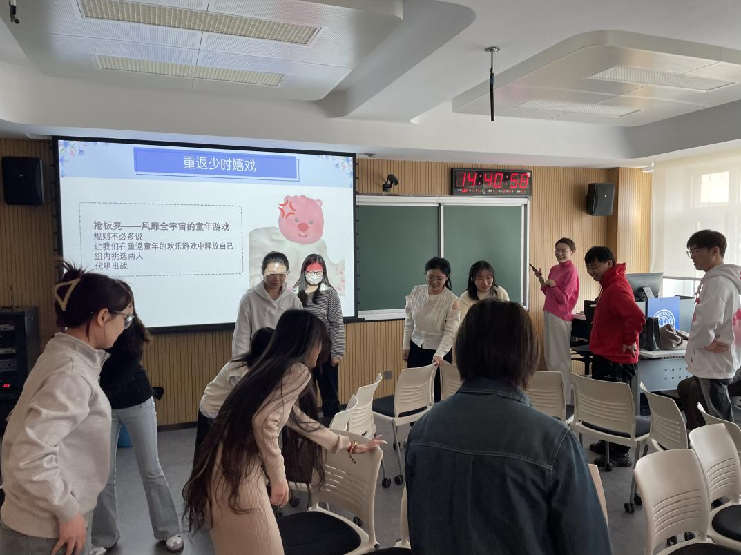 “情绪大头贴”环节背面向上发放情绪卡,让参与者随机抽取一张卡片并保密,在小组内,每个同学以肢体动作、面部表情辅助自己设计的小故事,请大家在表演结束后猜想对应的情绪。从组内所有的情绪卡中挑选出一个最具猜测挑战难度的设计至少3个人参与演出的故事表演另外几组的同学们看完表演后一起以抢答的形式猜一猜。通过情景剧表演表明了情绪输出与输入在学校生活中的重要性,并鼓励员工们积极参与,敞开心扉,共同探索心理成长的路径。重返童年环节“抢板凳”——风靡全宇宙的童年游戏,让到场同学在重返童年的欢乐,释放日常压力。