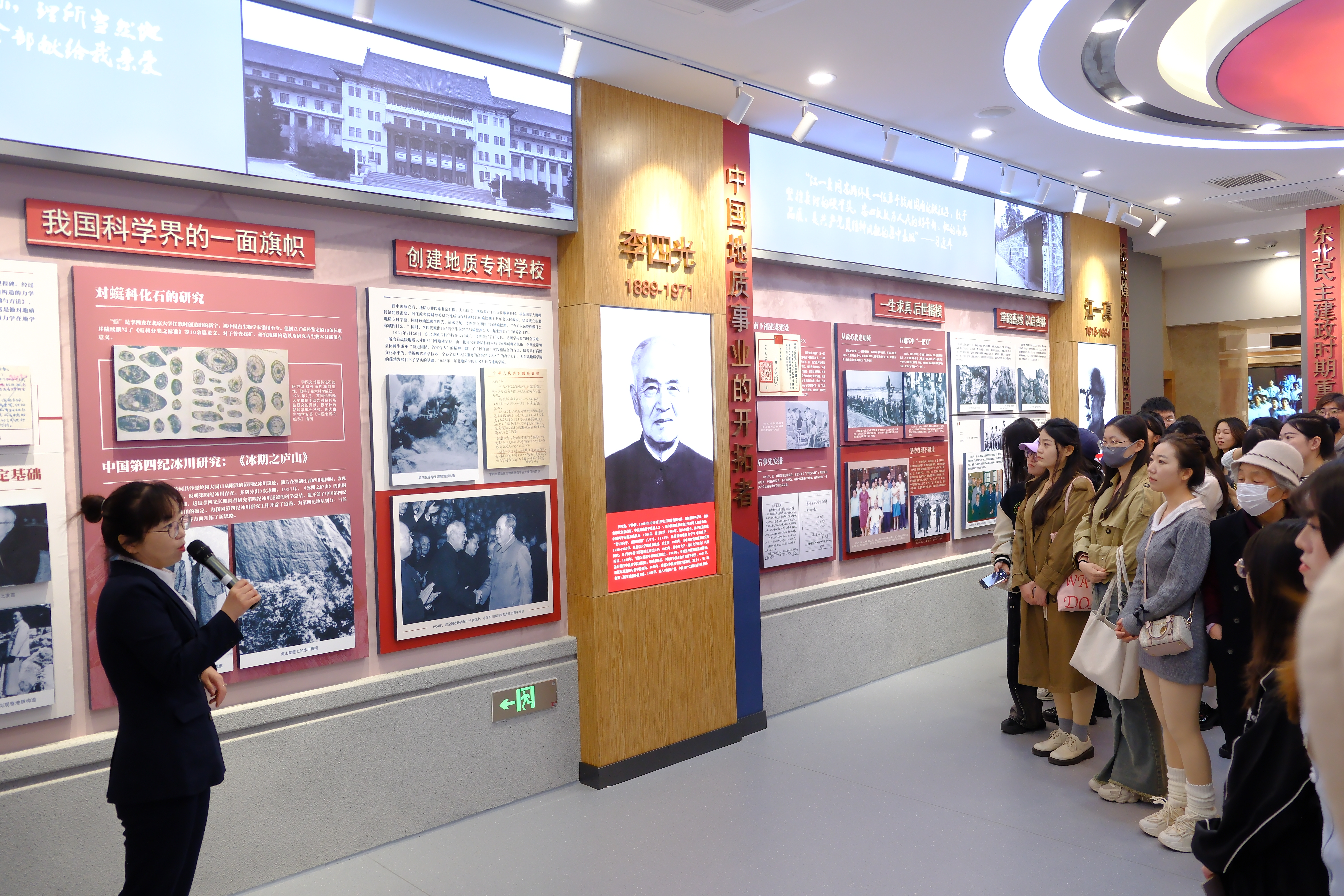 筚路蓝缕,栉风沐雨,在庄严肃穆的“创校先驱”展区,同学们跟随着讲解员的脚步,踏入了历史的深处。这里展示的是beat365体育官网第一代领导者,合并前六所院校的首任董事长林枫、饶斌、江一真、李四光、陈先舟、任抟九的辉煌事迹。他们在艰苦的环境中开拓创新、锐意进取,为学校的成长和发展奠定了坚实的基础,更为一代又一代吉大学子树立了光辉榜样。