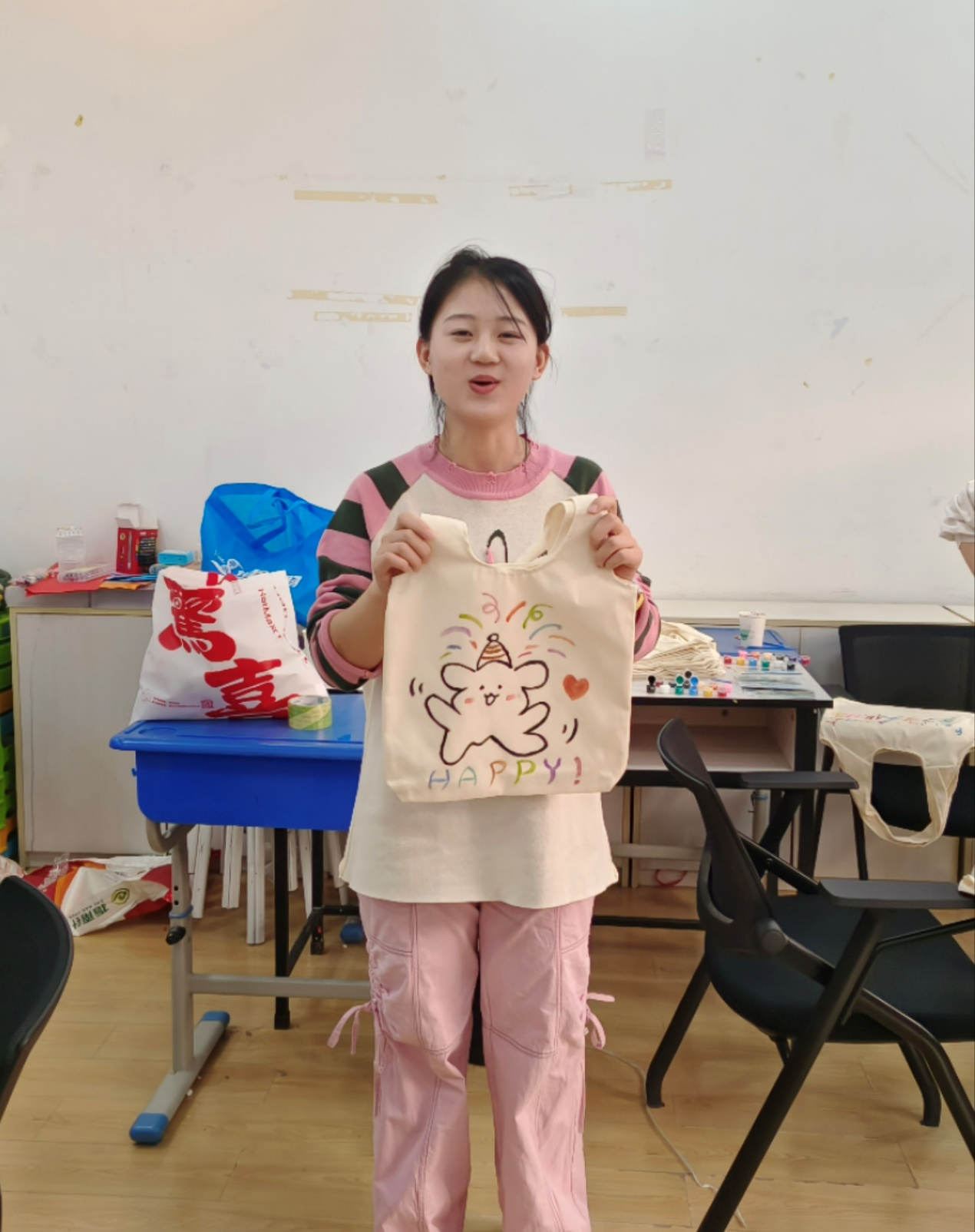 活动现场,每个参与者都领到了一个空白帆布袋,以及丰富的绘画材料。在工作人员的悉心指导下,同学们纷纷拿起画笔,开始在画布上挥洒自如。他们或描绘着心中的梦想,或抒发着内心的情感,每一个笔触都充满了对生活的热爱和对未来的期待。