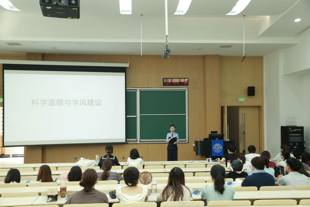 活动中,刘畅对新同学的到来表示了热烈欢迎,并围绕科学道德、科学精神、科研不端行为三大核心维度,系统阐释科学道德与学术规范的重要性,为新生搭建起清晰的学术准则框架。刘畅深入解读了科学道德内涵,指出其是在法律与校规基础之上,对科研工作者提出的更高要求,需结合新时代背景践行学术责任与担当,引导新生在学术探索中兼顾科学意识和人文精神。最后,她寄语新生坚守学术道德,共同营造良好的学术生态。