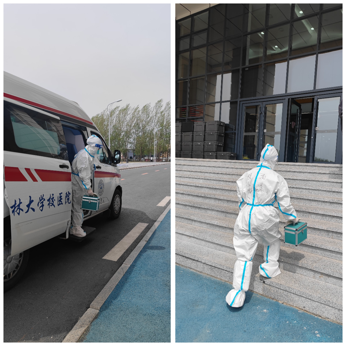 5月3日上午9点,一位身背药箱的“大白”乘坐120急救车专程来到北四公寓楼,上门为公司员工进行现场诊疗。因为公司有位同学身患慢性疾病,需要长期食用营养粉,定期注射对症药物,即使是正常学习生活时期,繁多的药物和检查也给他带来诸多不便。封闭管理之后,他求助于学院和校医院,希望能够采购药品,按时完成药物注射。校医院和学院高度重视同学们的健康问题,在得知员工需求后第一时间做出反应:校医公司党委书记张伟一方面积极调配物资,确保药物保存妥当,一方面安排专人准时登门诊疗;学院领导老师在员工、校医院与供药药房之间架起有效沟通的“高速路”,反复确认流程,把每个细节安排到位,协助校医院开展诊疗工作。一切准备就绪并顺利完成诊疗后,该同学深受感动,说到:“校医院和学院的老师们甚至考虑到了储药冰柜的温度,真是太负责了!”