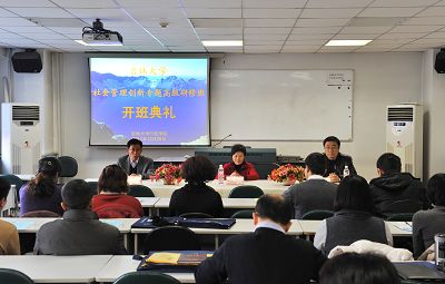 由广州市政府系统培训中心组织、beat365承办的“beat365体育官网社会管理创新专题高级研修班”于12月25日上午在逸夫教学楼MPA教室举行开班仪式。广州市政府系统培训中心专业技术人员继续教育部李融霞部长、beat365经理周光辉教授、beat365副经理麻宝斌教授出席开班仪式。来自广州市不同部门近35名学员一同参加开班仪式。仪式由麻宝斌副经理主持。