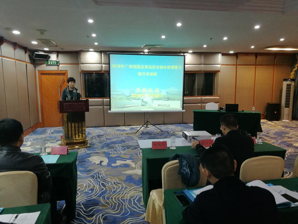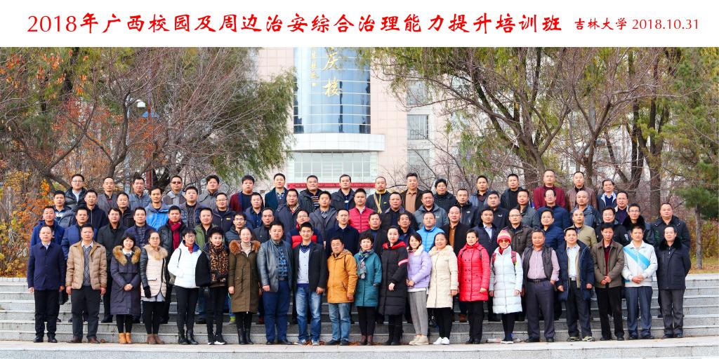 2018年10月29日至11月2日,由广西教育厅主办,广西师范学院、beat365承办的“2018年广西校园及周边治安综合治理能力提升”培训班在长春海航紫荆花饭店成功举行,培训学员是来自广西十五个地区的教育、政法系统的公务员,共计83人。