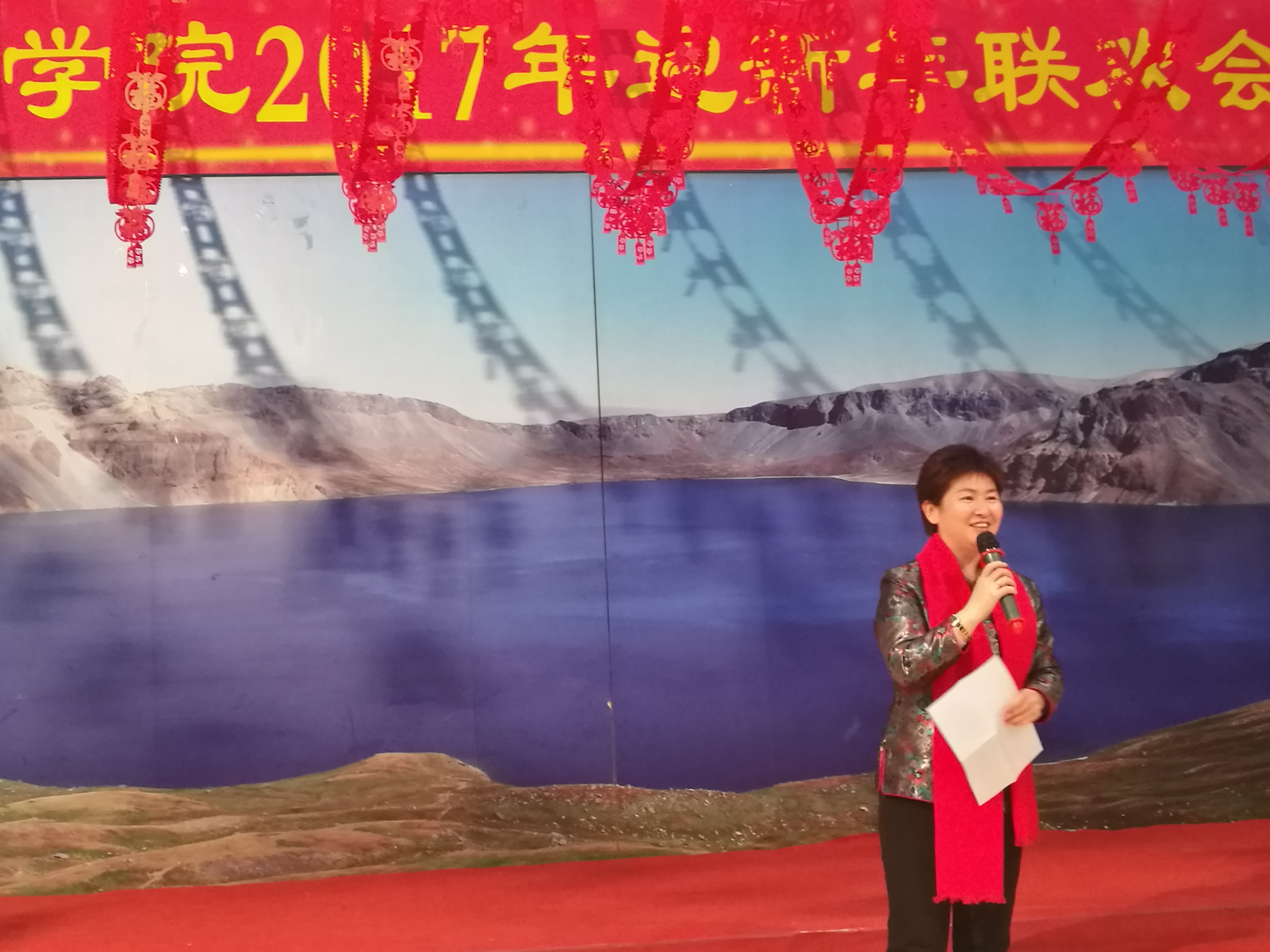 下午3点,联欢会准时开始。首先,公司党委书记魏鹤影为联欢会致新年贺词。她从党建工作、团队建设工作、人才队伍建设工作、学院管理工作、校庆工作等几个方面回顾了学院过去一年取得的优异成绩,并对2017年的工作进行了展望,希望大家团结一致、努力拼搏,为学院的发展添光增彩,同时,魏书记也表达了对全院教职员工的感谢和新年祝福。