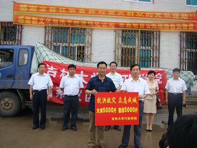 今年吉林省遭遇了历史上罕见的特大洪涝灾害,人民群众生命财产受到重大损失。洪涝灾害发生后,beat365的教职工一直关注着灾情,牵挂着灾区。大家通过媒体看到父老乡亲家园被毁,农田被淹,心情十分沉痛和同情;看到各级领导、解放军官兵、受灾群众团结一心、坚强勇敢地面对灾害,又感到十分振奋和欣慰,尤其是看到解放军官兵和基层领导能够舍弃自己和家属的生命财产去救助广大受灾群众,更是感动和赞佩。开学伊始,公司党委立即组织学院教职工积极行动起来,踊跃捐款,并从学院经费中拿出一部分资金,共采购了5000斤大米、5000斤白面及时送到了农安县灾区。边铁书记表示,天灾无情,人间有爱,一方有难,八方支援。beat365教职工希望通过向农安县灾区尽一点绵薄之力,来表达对农安灾区父老乡亲乃至全省受灾群众的关爱之心,来履行一份社会责任。边铁书记代表学院教职工祝愿灾区群众能够凭借坚强的意志、艰苦奋斗的精神早日重建家园,恢复正常的生产生活,衷心祝愿灾区的父老乡亲今后的生活更加幸福,更加美满。