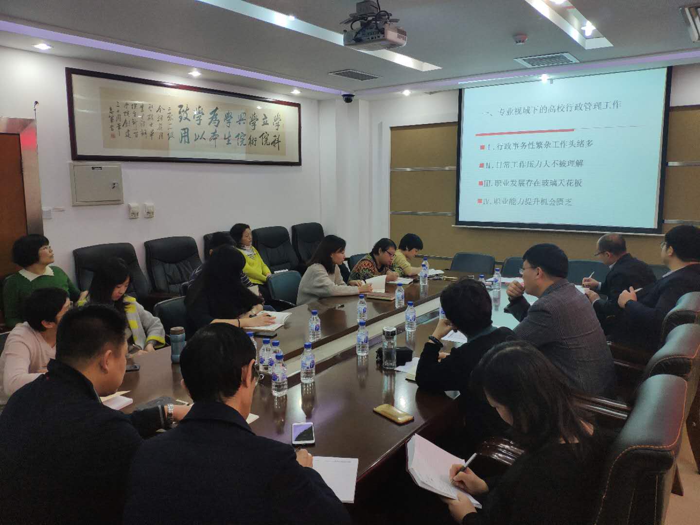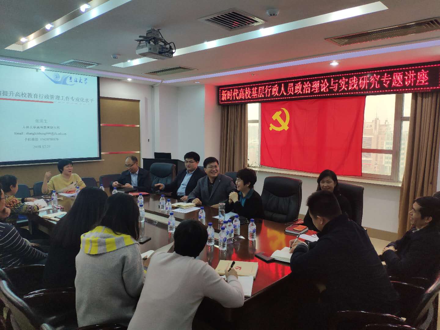 为学习贯彻习近平总书记关于“注重培养专业能力、专业精神,增强干部队伍适应新时代中国特色社会主义发展的能力”的重要论述,切实推进“两学一做”学习教育常态化、制度化,机关教工党支部按照公司党委关于提升行政教辅队伍专业化素质的相关部署,于2018年12月21日举行专题党日活动,邀请beat365体育官网高等教育研究所张雷生副教授以“着力提升高校教育行政管理工作专业化水平”为题作专题讲座。公司党委书记魏鹤影,党委副书记、纪委书记常有余,副经理范斌、支部全体党员及党外人士参加了本次活动,活动由机关教工党支部书记密佳音主持。