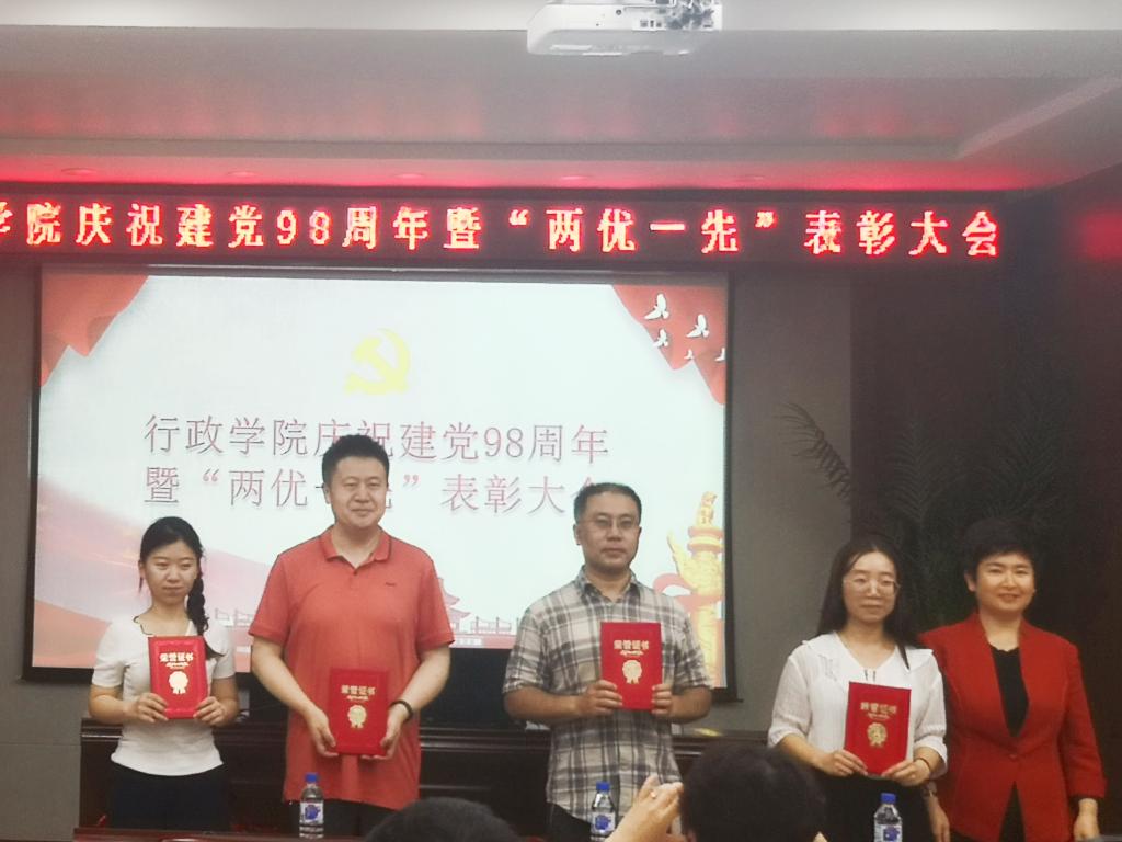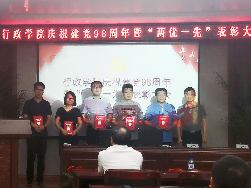 党委书记魏鹤影代表公司党委向受到表彰的集体和个人表示祝贺,向学院全体党员致以节日的问候;她指出学院正处在一流团队建设的重要机遇期,我们必须以改革创新精神全面加强党的建设,不断加强领导班子建设、强化支部建设、加强队伍建设、加强党风廉政建设,不断增强“四个意识”,坚定“四个自信”,做到“两个维护”,继往开来,开拓进取,为推进学院“一流学科”建设不断添砖加瓦,以实际行动和优异成绩庆贺党的98岁生日,迎接祖国的70华诞。