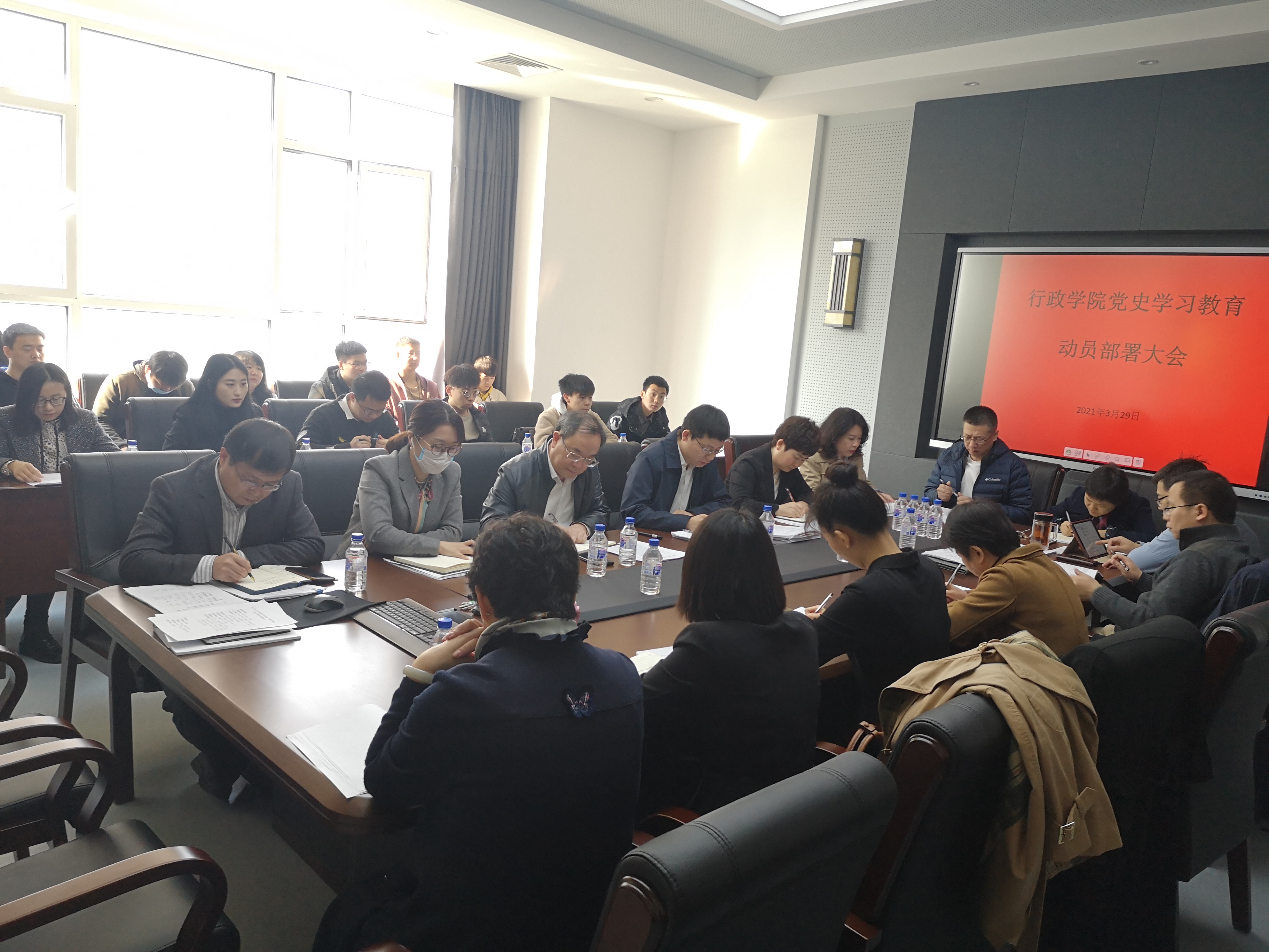 4月9日上午,beat365在东荣大厦B302会议室召开党史学习教育动员部署大会。学院领导班子成员、党委委员、系主任、党支部书记及部分师生党员代表参加了本次会议。党委书记马景惠做动员部署讲话,会议由经理张贤明主持。
