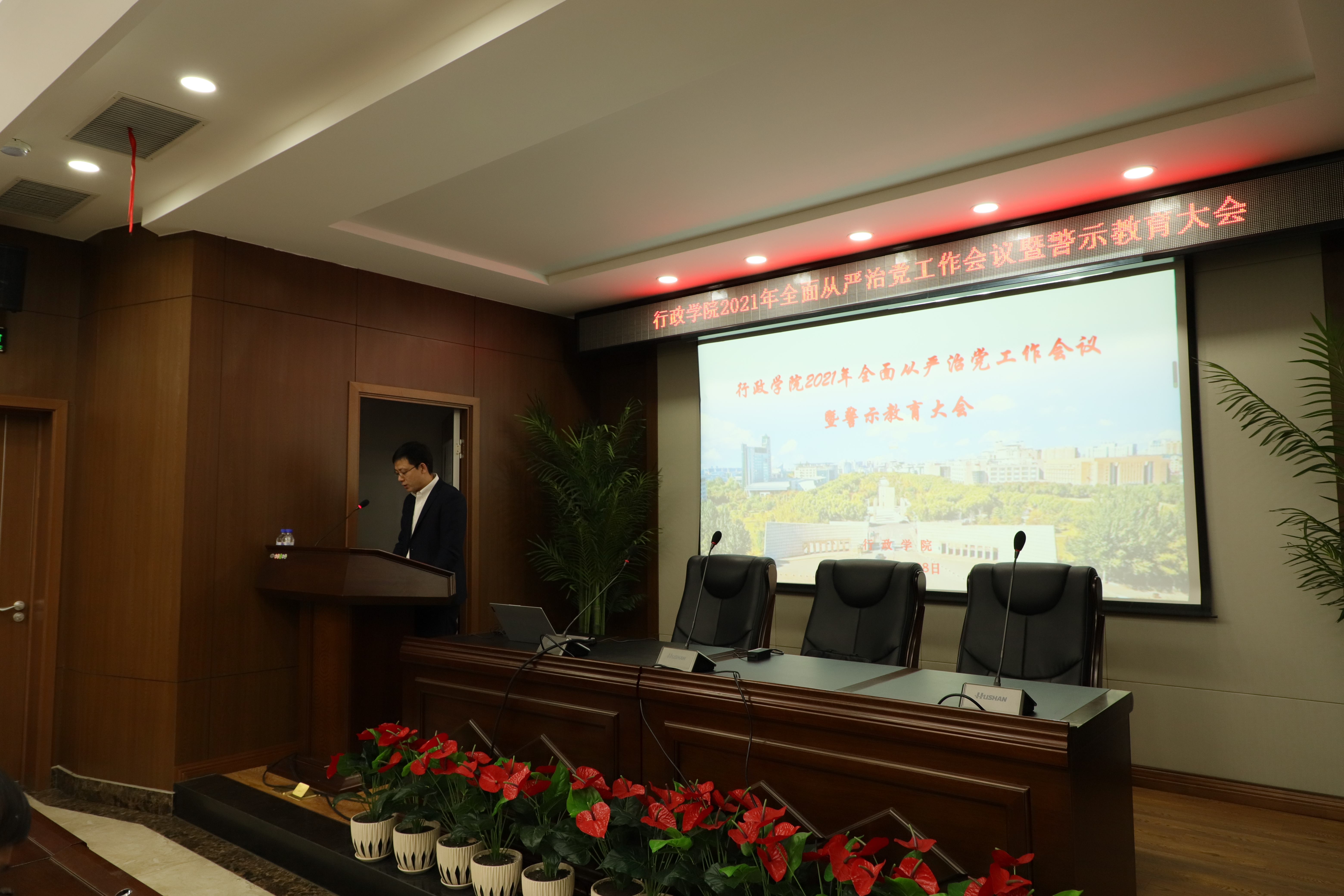 4月28日下午,beat365在东荣大厦B303会议室召开全面从严治党工作会议暨警示教育大会,学院全体教职工参加会议,会议由党委书记马景惠主持。