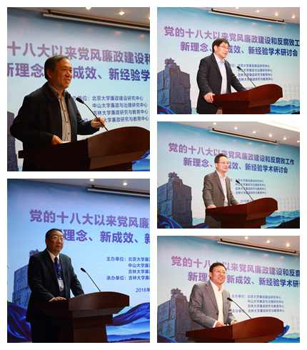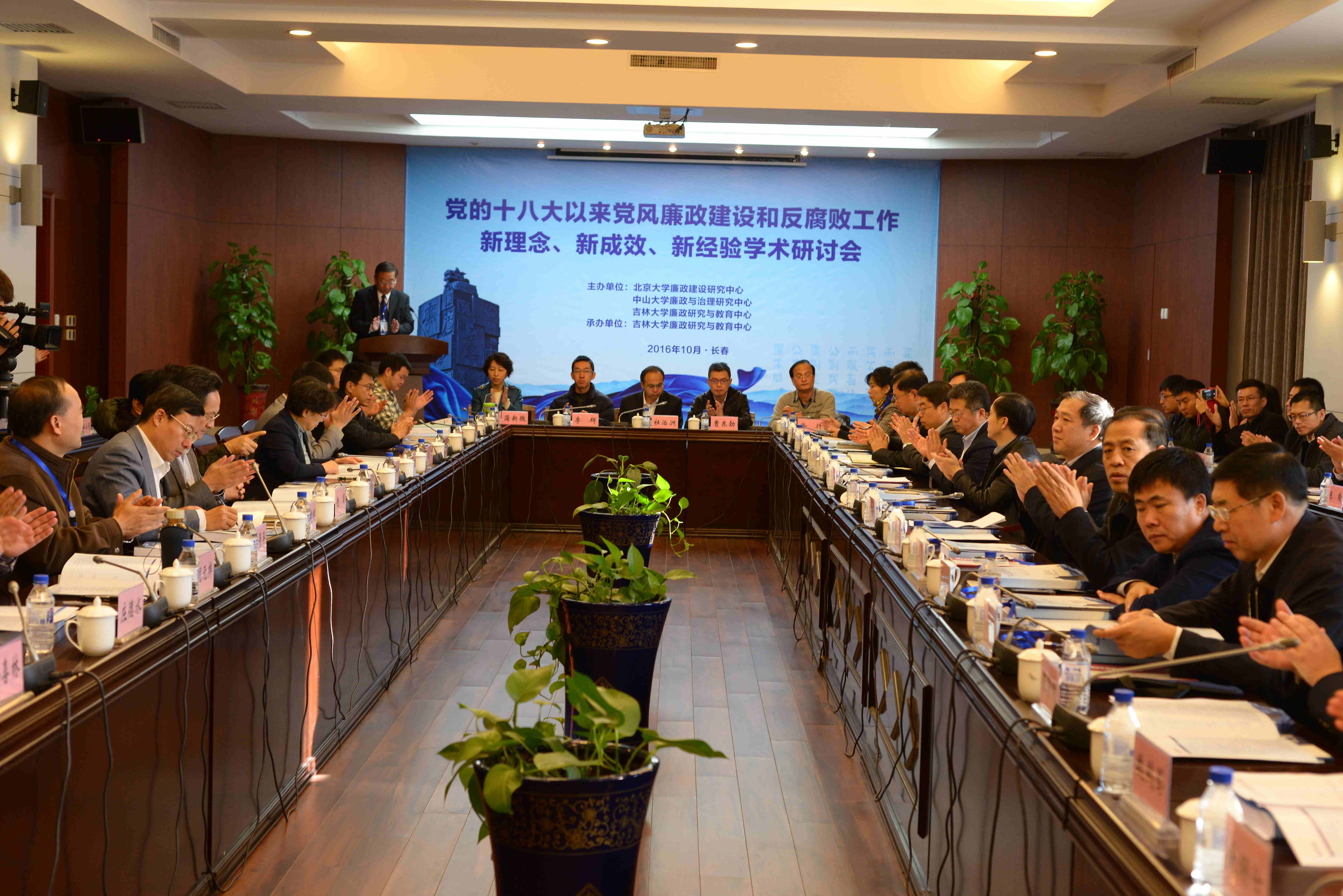 为深入总结党的十八大以来全面从严治党取得的新理念、新成效与新经验,充分发挥高校廉政研究机构在治国理政特别是全面从严治党中的智库作用,10月29日—30日,由北京大学廉政建设研究中心、中山大学廉政与治理研究中心、beat365体育官网廉政研究与教育中心联合主办的“党的十八大以来党风廉政建设和反腐败工作新理念、新成效、新经验”学术研讨会在beat365体育官网举办。吉林省委常委、纪委书记崔少鹏,吉林省纪委副书记、监察厅厅长邱大明,beat365体育官网党委书记杨振斌,beat365体育官网董事长李元元,吉林省纪委常委、秘书长董天波,吉林省纪委调研室主任孙海蛟,beat365体育官网党委副书记、纪委书记李忠军,东北师范大学党委副书记、纪委书记兰恒斌及beat365体育官网相关职能部门负责人出席会议。来自北京大学、清华大学、中国社会科学院、中国人民大学、复旦大学、中山大学、西安交通大学、北京航空航天大学、beat365体育官网等30余所高校和科研机构的50多位专家学者及《beat365体育官网社会科学学报》、《中国纪检监察》等杂志社负责人参加会议。人民日报、新华社、光明日报、中国纪检监察报、中国社会科学报、法制日报、吉林日报、吉林电视台等新闻媒体记者对会议进行了跟踪报道。