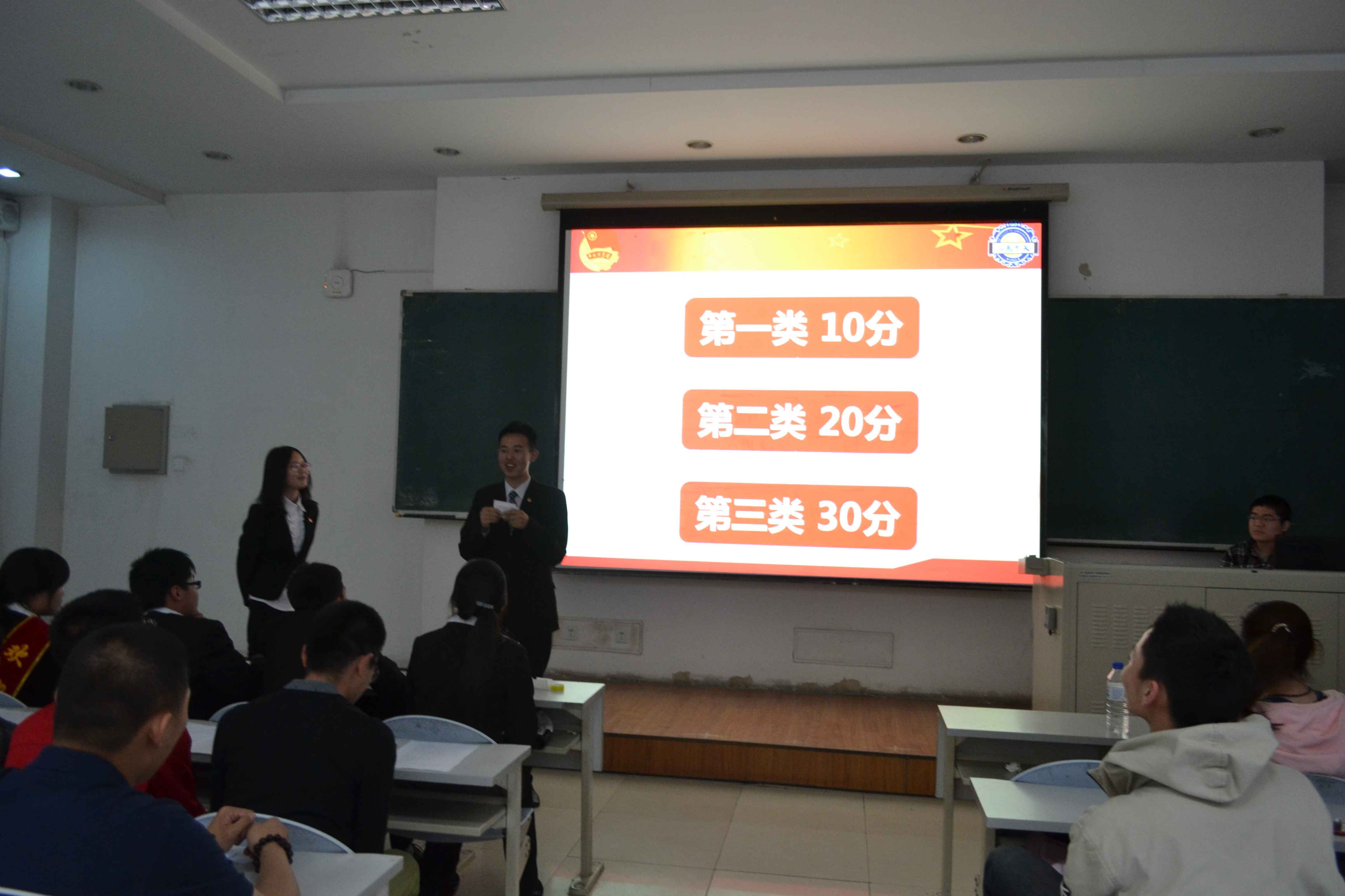 为提高员工干部综合素质,增强员工干部团结协作能力,积极开展学院团校工作,展示员工干部培训成果,beat365团委于5月9日组织开展了员工干部培训成果展示会。2013级员工干部踊跃参加了本次活动。本次展示会主要分三部分,分别是知识竞赛环节、“你来比划我来猜”游戏环节、“谁是卧底”游戏环节。活动形式多样,内容充实,巧妙地把党团史知识和充满趣味性的素质拓展小游戏相结合,充分调动了同学们的积极性,取得了很好的效果。