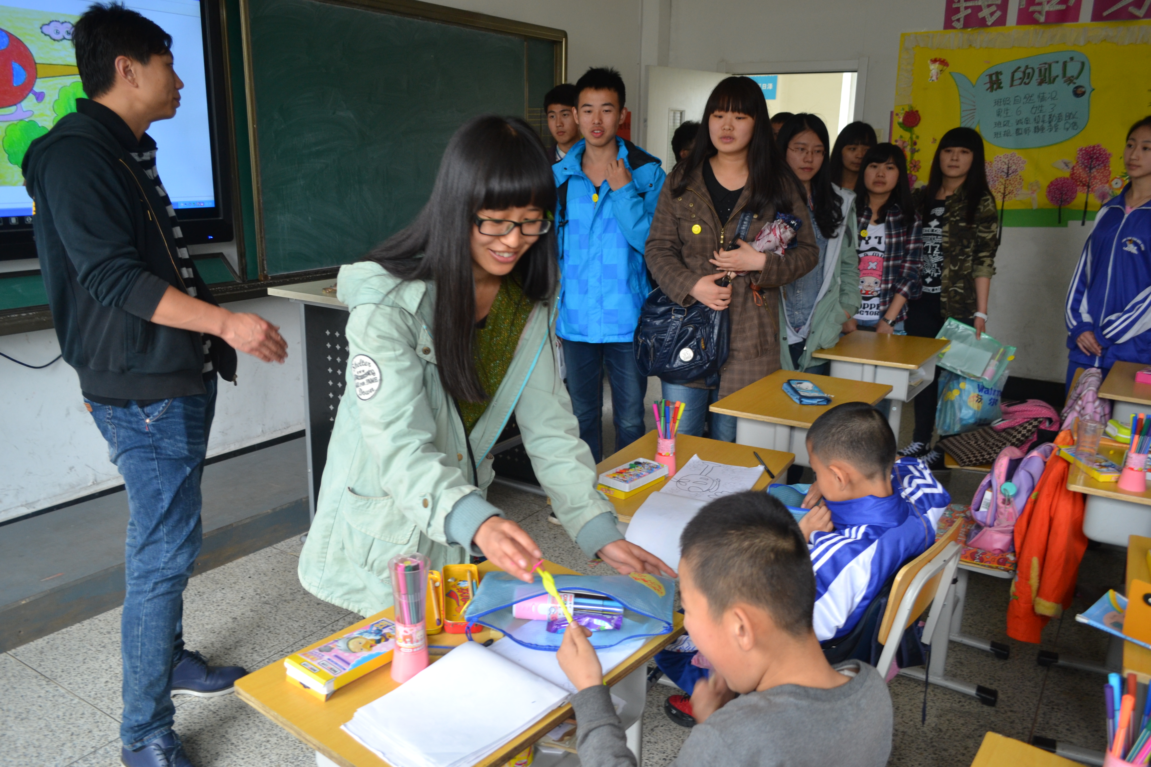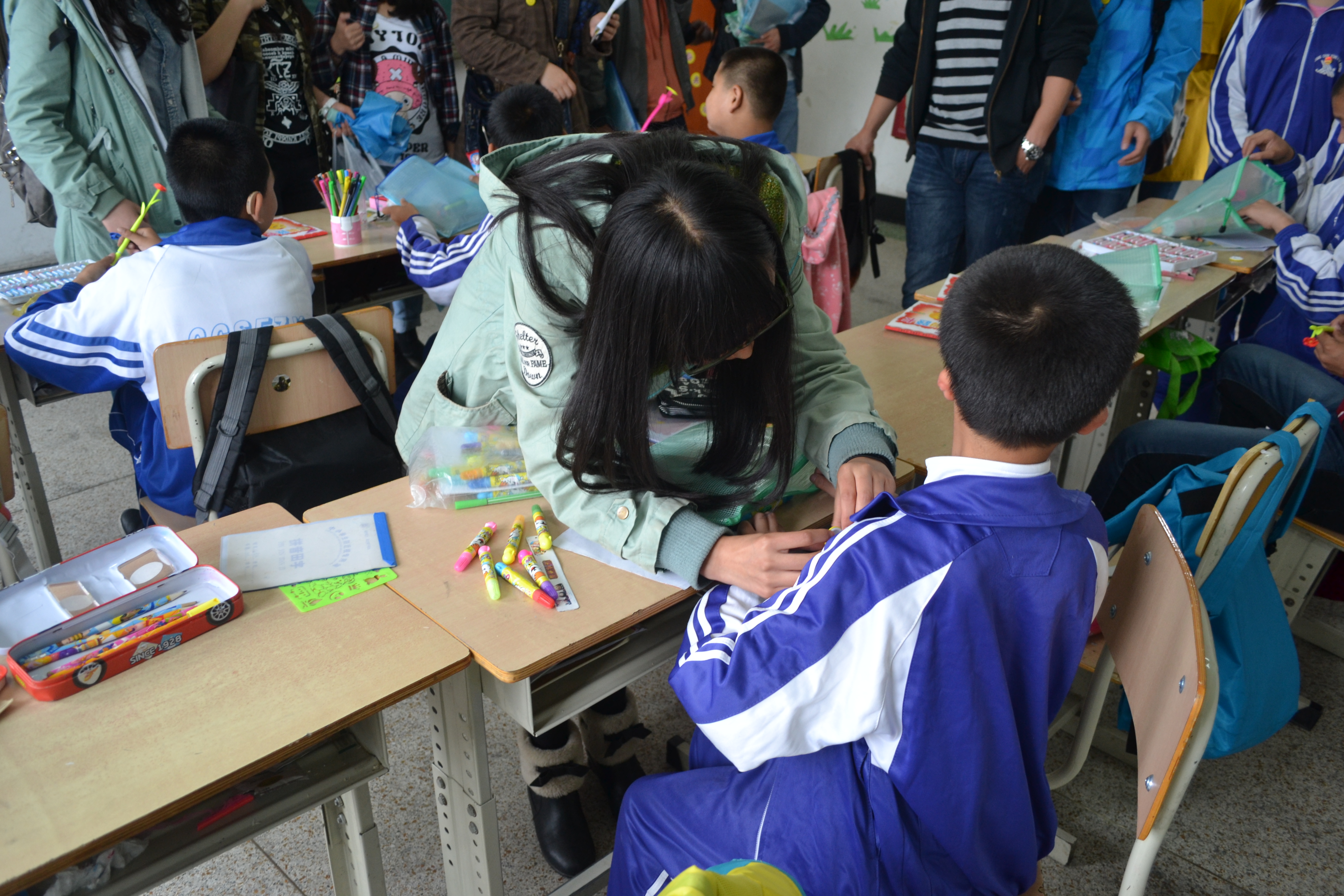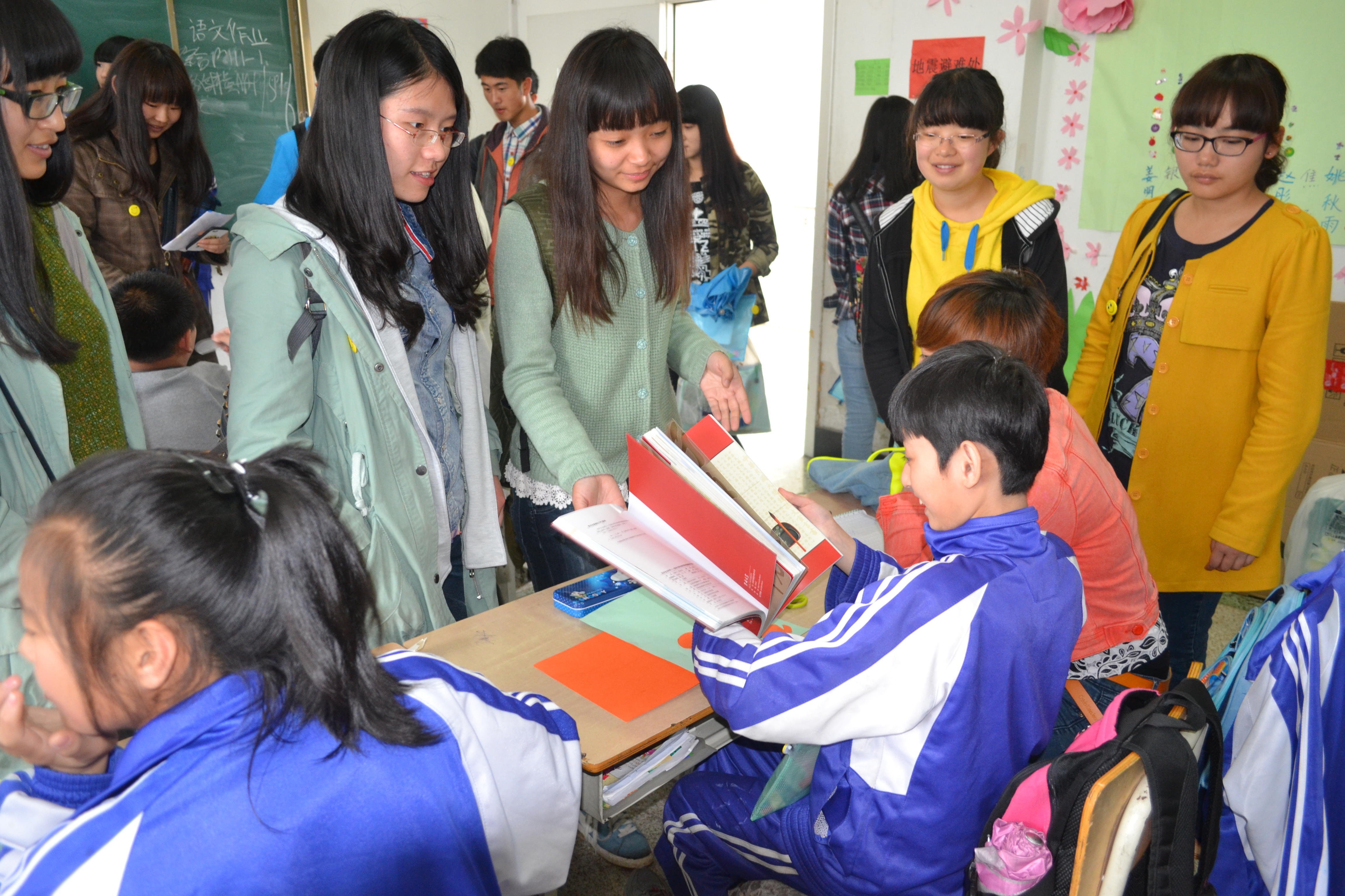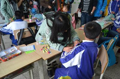 同学们在校领导的指引下,探访了学校的一些聋哑儿童班级,与小朋友们做了很多游戏,用手语和他们交流,并为他们佩戴了带有笑脸的胸徽。一位聋哑儿童用手语表达出他很喜欢各位志愿者带来的礼物,希望以后他们还来,孩子们质朴的笑脸让很多老员工为之动容。“很开心能看到老员工们来到这里,感谢有那么多人关心着这里的孩子们,给予孩子们这么多关爱,老员工是最有活力的团体,这个活动很有意义,希望类似的活动可以多些。”学校里的刘老师对志愿者们的到来表达了谢意。随后,校领导代表小朋友们将他们手工制作的爱心千纸鹤送给了行政学子,希望可以通过同学们转交给那些社会上的爱心人士。