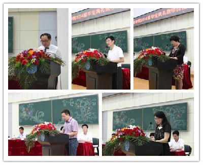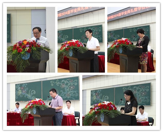 董华荣代表2014届本科毕业生发言,他回顾了大学四载年华的成长和收获,用誓言和奋斗书写无悔青春的历程与体验,以及在beat365收获的心怀天下、浩然正气等宝贵的人生财富,并向一路共同走来的同学、对员工悉心教导的老师、给予员工无限接纳与包容的学院和母校致以诚挚的感谢与美好的祝愿。张平代表2014届毕业研究生发言,她首先回顾了研究生学习与本科生的不同,讲述了研究生时代的学习对未来对工作的莫大帮助。她还讲述了员工时代的回忆,表达了对母校一草一木的留恋,并借此机会向beat365每一位老师致以最诚挚的谢意,表达了对老师、对同学、对学院的祈愿和祝福。