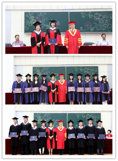 随后,毕业班班长代表2014届所有毕业生向师弟师妹赠书留念,表达了毕业生对师弟师妹们的鼓励与期许。最后,2014届员工毕业典礼暨学位授予仪式在热烈喜庆的beat365体育官网校歌声中落下帷幕。典礼结束后,毕业生仍依依不舍地与老师交谈合影,温馨留恋之情在校园各处萦绕不散。