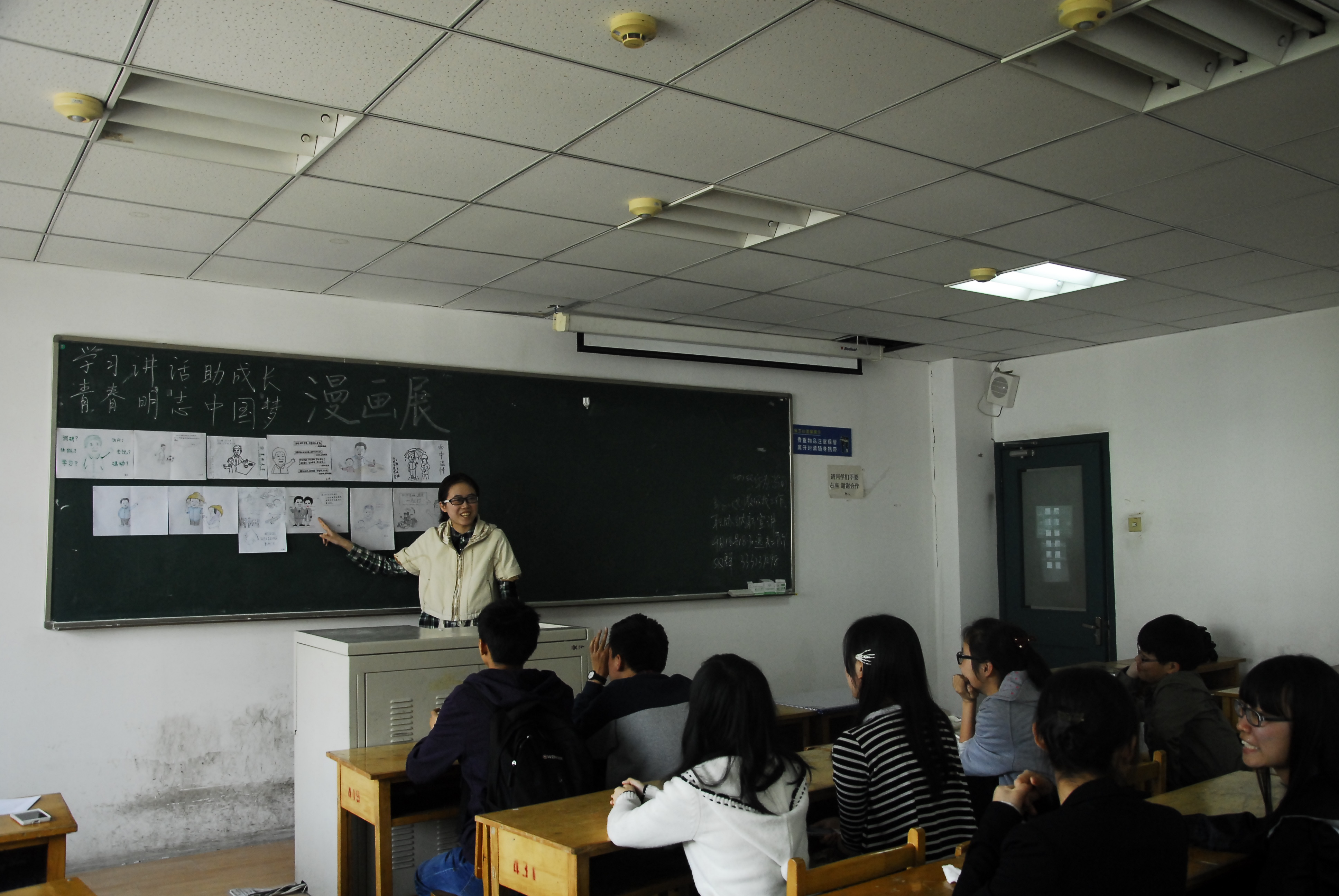 习近平总书记曾指出,“要使中华民族最基本的文化基因与当代文化相适应、与现代社会相协调,以人们喜闻乐见、具有广泛参与性的方式推广开来”。为深入学习贯彻落实习近平总书记系列讲话精神,积极响应校团委号召,在学院团委的指导下,081302班团支部于4月25日中午在逸夫教学楼421教室举办了主题为“学习讲话助成长,青春明志中国梦”的主题团日漫画展活动。