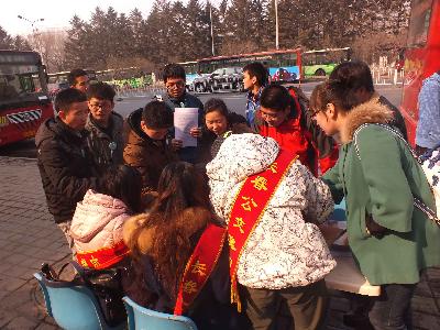 为了增强消费者法制观念,更好地维护消费者合法权益,维护社会稳定,促进社会和谐发展,3月15日,beat365081202班和081302班的同学来到了吉林省长春市公交巴士第五车队,在两班班长的带领下,同车队工作人员一起组织了一场以“打击假币残币,构建文明春城”为主题的3•15打假宣传活动。