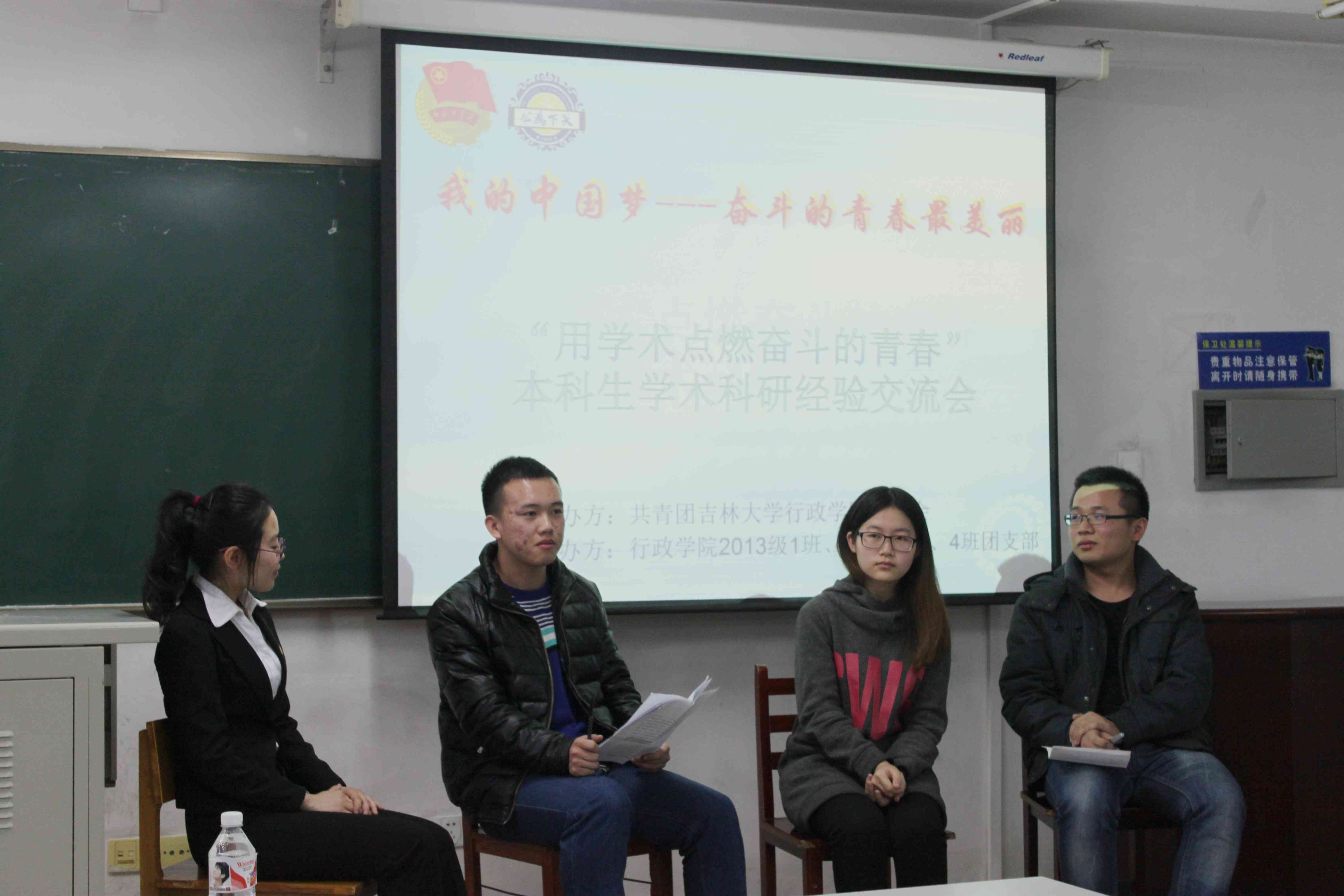 11月23日下午三时许,由共青团beat365委员会主办,2013级各班团支部承办的“我的中国梦一一奋斗的青春最美丽”主题团日系列活动之“用学术点燃奋斗的青春”本科生学术科研经验交流会在beat365体育官网中心校区第三教学楼405教室成功举办。beat365团委副书记赵吉应邀出席,本次经验交流会的嘉宾是2010级优秀本科生刘欢欢、张潇翔和聂长芳。交流会由beat365团委社团部部员孙诗淇(2013级)主持,2013级同学积极参加了此次活动。