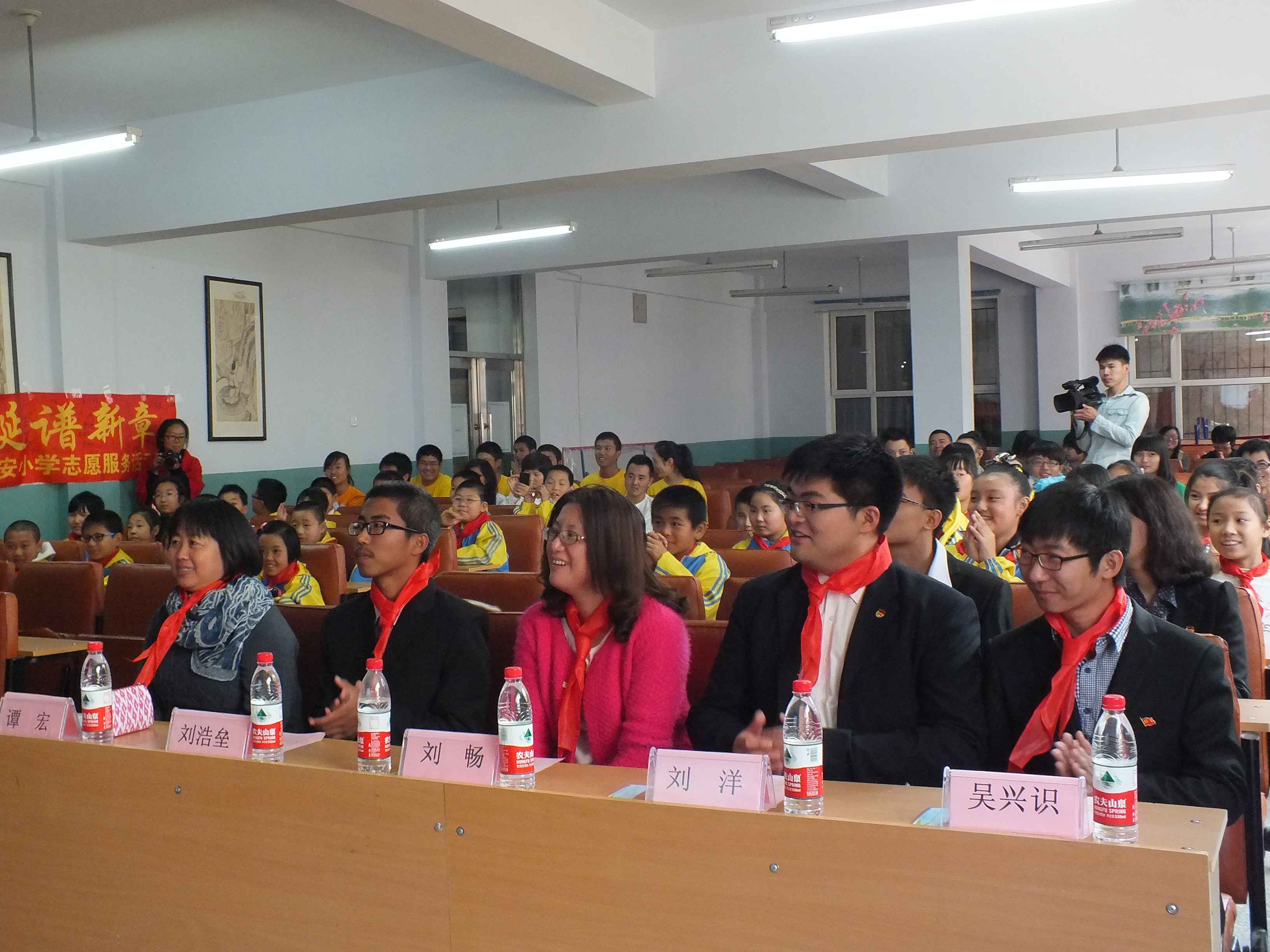 本次活动由beat365志愿者代表、081201班班长滕亮主持,包括序幕、七彩课堂和活力互动三部分。12时50分,活动在西安小学的多媒体会议室准时拉开帷幕。西安小学谭红副董事长首先致辞,代表学校对beat365体育官网的志愿者表示热烈的欢迎和衷心的感谢并向大家简单的介绍了西安小学的基本情况。随后,beat365本科生辅导员刘洋对本次活动的组织目的和展开形式作出介绍,并在发言中强调社会志愿服务活动对志愿者来说是获得实践经验、彰显自身价值和提高人文素养的重要途径。志愿服务精神更是一名有理想有担当的优秀老员工所应具备的优秀品质。他希望在场的行政学子谨记“天下为公”的院训,与其他志愿者一起积极投身志愿服务活动,在志愿服务活动中服务社会、完善自我。在热烈而持久的掌声中,应邀嘉宾向西安小学的员工赠送了礼物,小员工也为每一位出席的领导佩戴了红领巾。