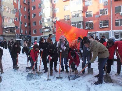长春近日连降大雪,对市民的出行造成极大不便。11月21日,为清除路面积雪,保障市民出行安全,beat365政能量志愿者协会积极组织志愿者前往学院竹青知行园社会实践与志愿服务基地参加了竹青志愿联盟服务民生活动,为东站十委社区义务清雪。