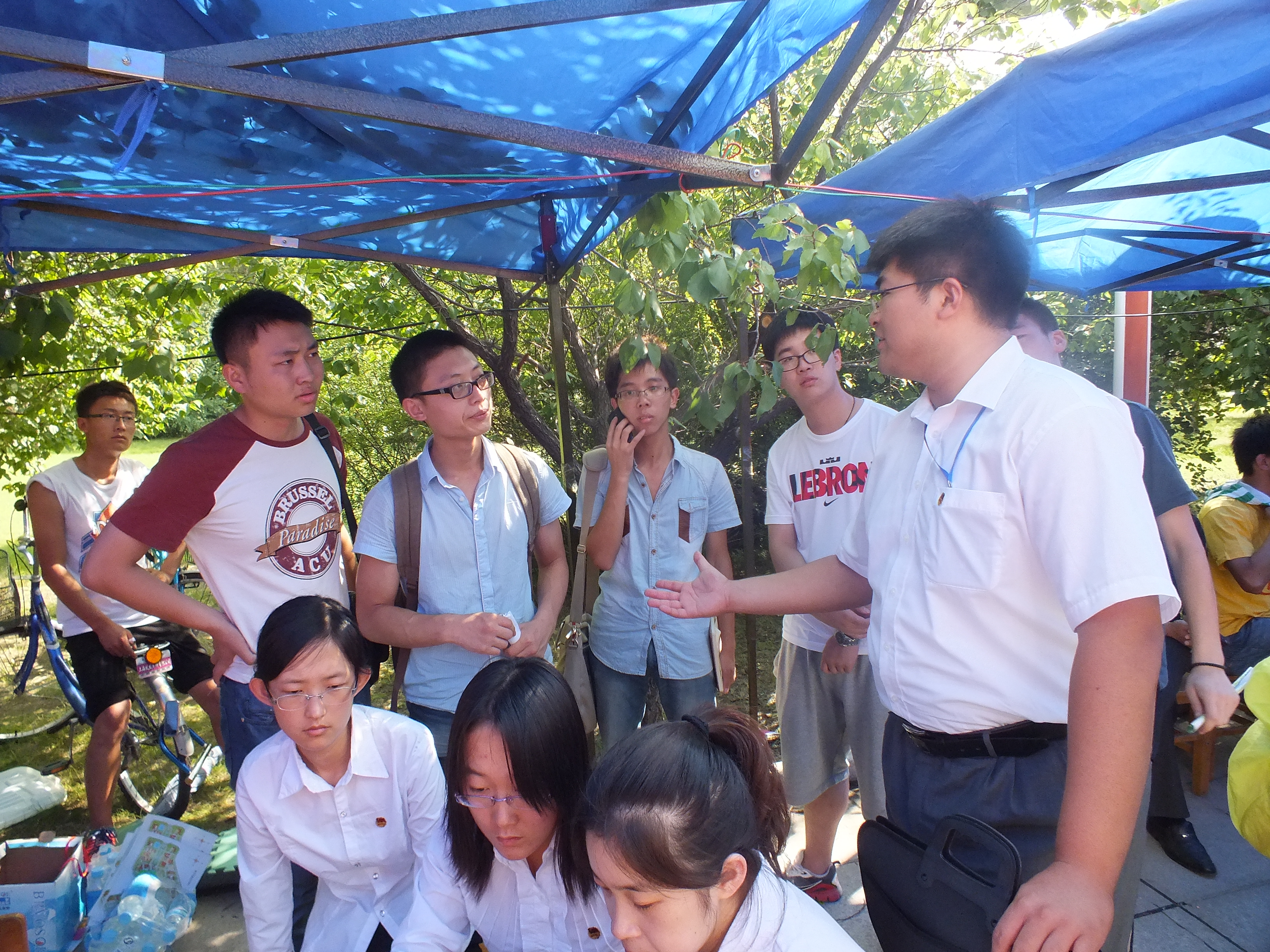 为了方便提前到校的新生顺利入学,积极热情的行政学子们在21日一早就开始了紧张有序的新生接待工作。学院在中心校区东门和北门都设置了临时接待站,为同学们提供最便捷的服务。在临时接待站的值班同学除了担任公司新生的引路人之外,还为过往的家长耐心的答疑解惑,使新生和家长们倍感温暖。学院正式迎新点设在五月花广场,各学院搭起帐篷,拉起条幅,欢迎新生的到来。公司工作人员身着正装,佩戴团徽,充分展现了行政学子的精神面貌。他们在迎新点引导新生填写各类信息、办理入学手续,并为陪同等候的家长提供细致入微的服务。完成入学手续的办理,13级新生在志愿者的帮助与带领下去往寝室。为了减少新生和家长们的负担,志愿者们主动扛过沉重的行李,一趟趟的奔波于迎新点和员工公寓之间,挥洒着自己辛勤的汗水。