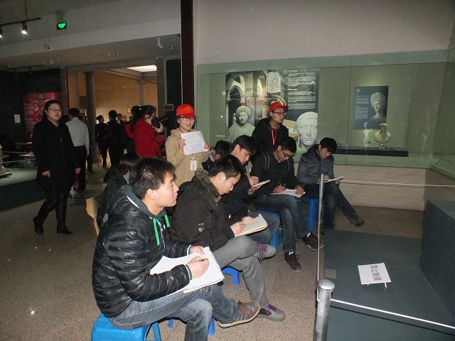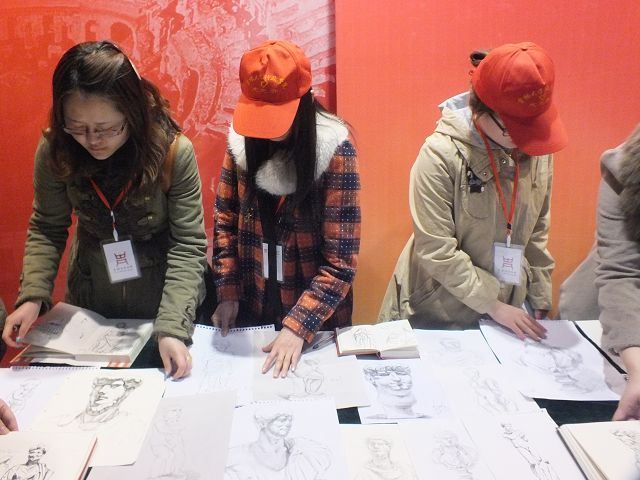 上午9时许,在长春大学特教学院手语教师杨帆的带领下,41名聋哑员工分别走进吉林省博物院的《辉煌时代——古罗马帝国文物展》展区和《瓯骆风 八桂情——广西民族历史文化展》展区,来自千年之前异域的神秘文物、充满民族风情的艺术品让聋哑同学感受到了艺术的熏陶。在老师的建议下,同学们选择好自己喜爱的雕塑模型,架起画板、拿好画笔,开始了现场临摹。临摹过程中,有的志愿者尝试着与聋哑同学进行简单的交流与沟通,为他们素描提供可行的建议;有的则耐心的为聋哑员工指引方向,提供座椅等物品;有的则维护现场秩序,保障本次活动的顺利进行,同时保护文物安全。