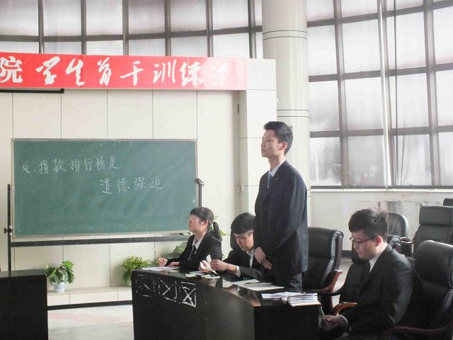 为丰富员工校园生活,巩固与促进院系间友谊,beat365与数学学院友谊辩论赛于4月14日下午在数学楼报告厅隆重举行。本场比赛双方就“捐款排行榜是道德示范还是道德强迫”这一辩题展开了激烈的辩论。比赛反方是由一辩范子雁(2012级)、二辩高晗(2012级)、三辩姚晗(2012级)、四辩寻累硕(2012级)组成的beat365代表队,他们秉持的观点是“捐款排行榜是道德强迫”,正方数学学院代表队的观点是“捐款排行榜是道德示范”。